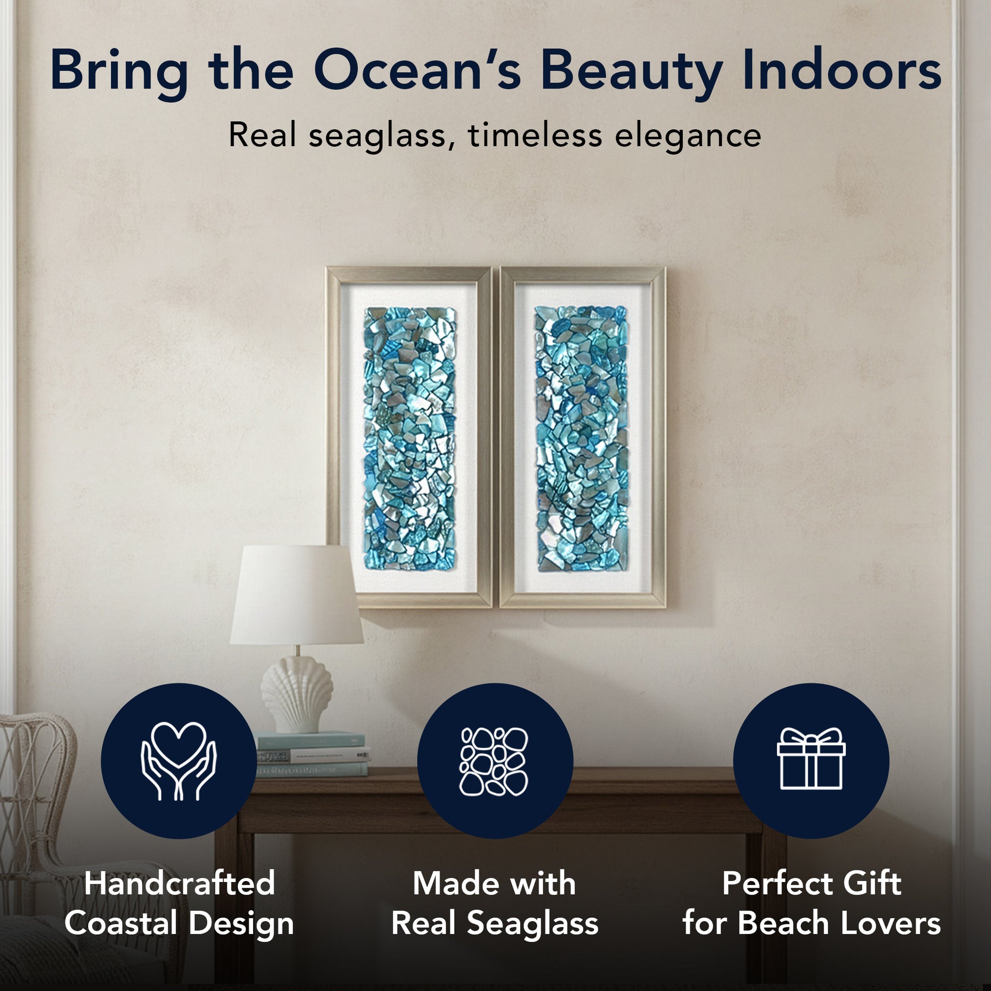 2-pc Sea Glass Shell Wall Art Set - Coastal Aqua & Teal Shadowbox Decor