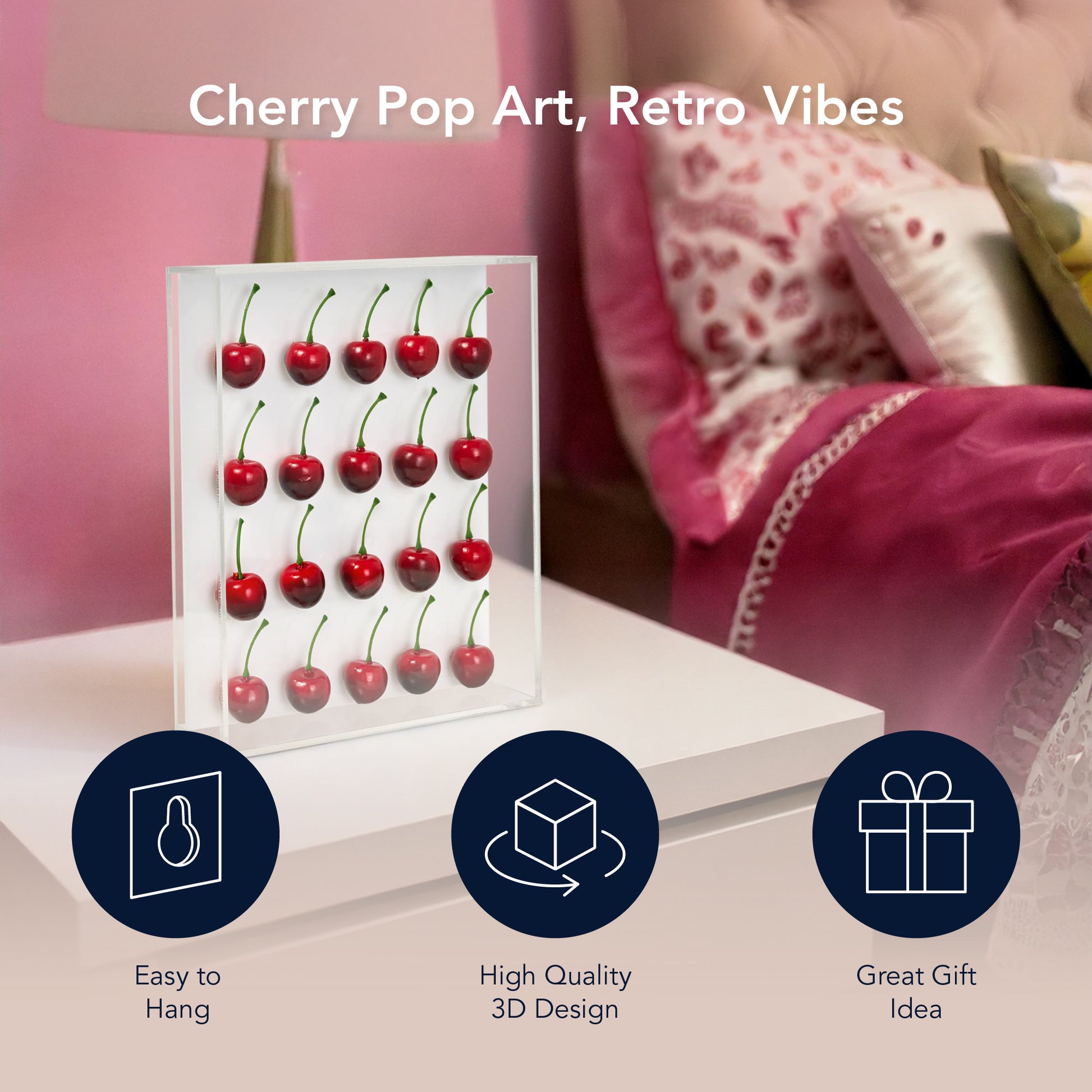 - 8x10 Fruit 3D Art: High-quality 3D Art featuring 20 red cherries, ideal for funky, retro wall art lovers.