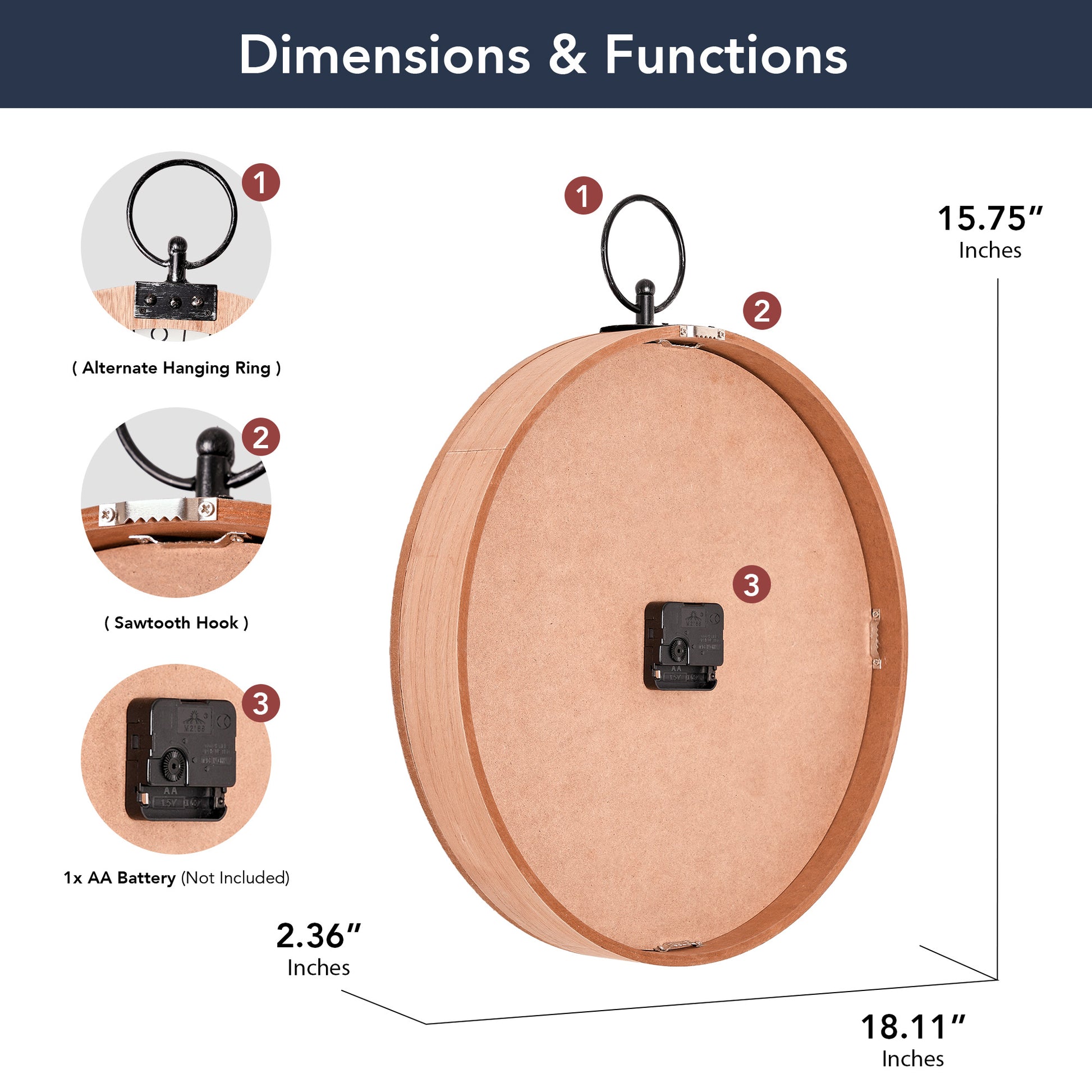 - BATTERY OPERATED - This hanging wall clock requires 1 AA battery (not included), making it an aesthetically pleasing wall decor piece that is free of unsightly cords.