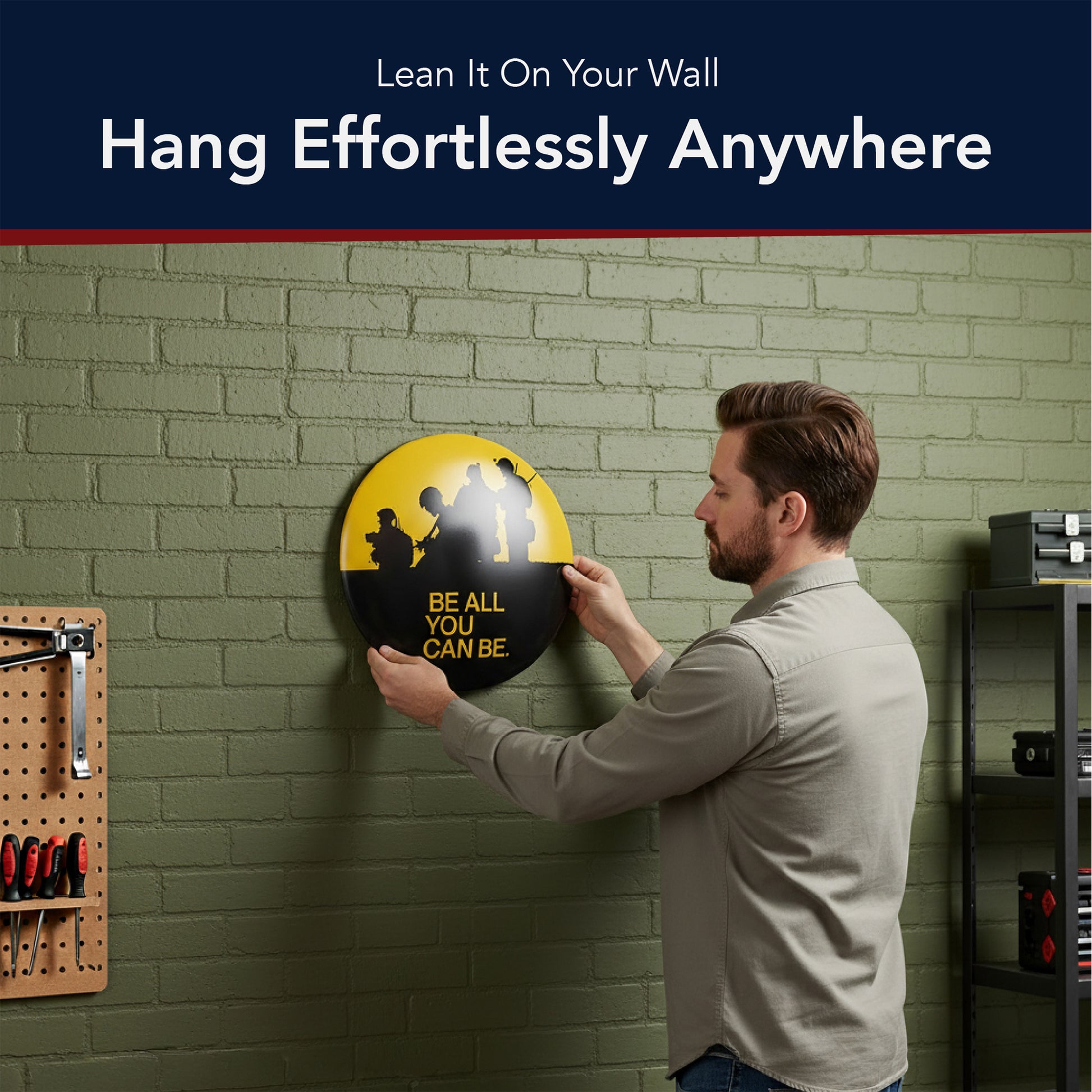 - ICONIC ARMY "BE ALL YOU CAN BE" DESIGN - Featuring a powerful soldier silhouette and legendary military message, this dome metal wall art celebrates service, commitment, and strength, making it a standout focal point in patriotic spaces.