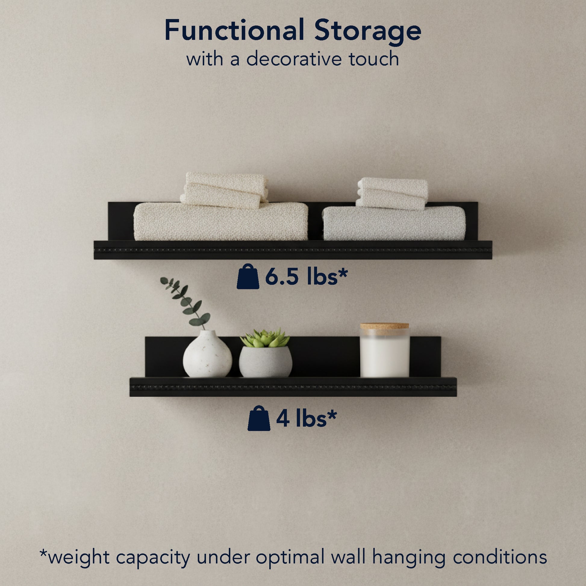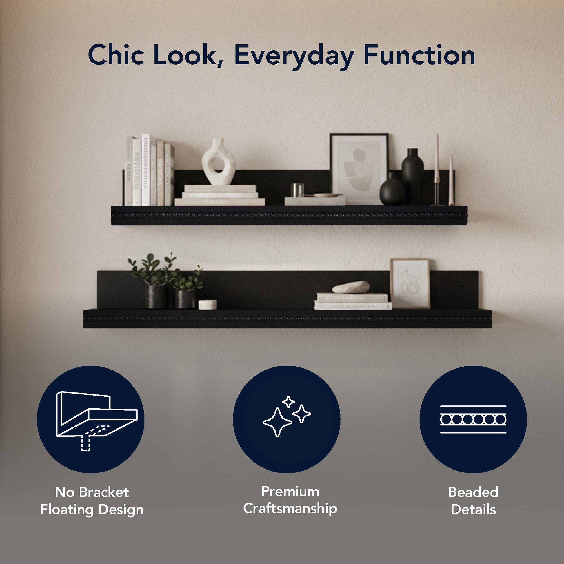 Beaded Ledge 2-Piece Floating Wall Shelf Set, Black Shabby Chic