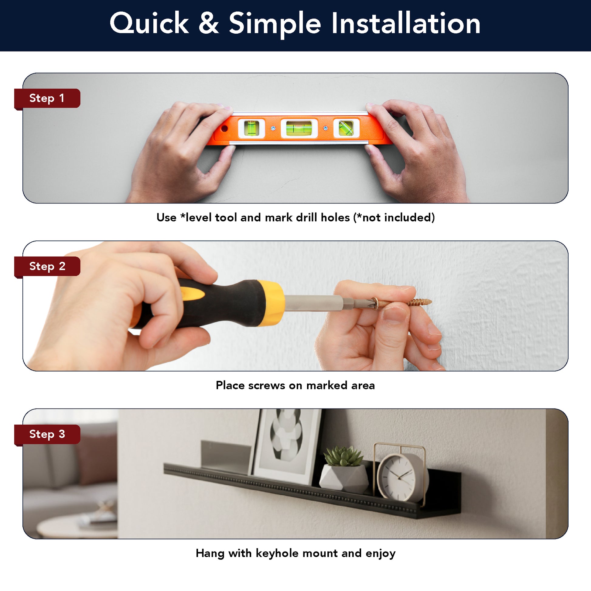 - BUILT-IN LIP PREVENTS SLIPS - Each shelf includes a subtle lip along the edge to prevent books, frames, or decor from sliding off - a smart feature for nurseries, staircases, or high-traffic zones.