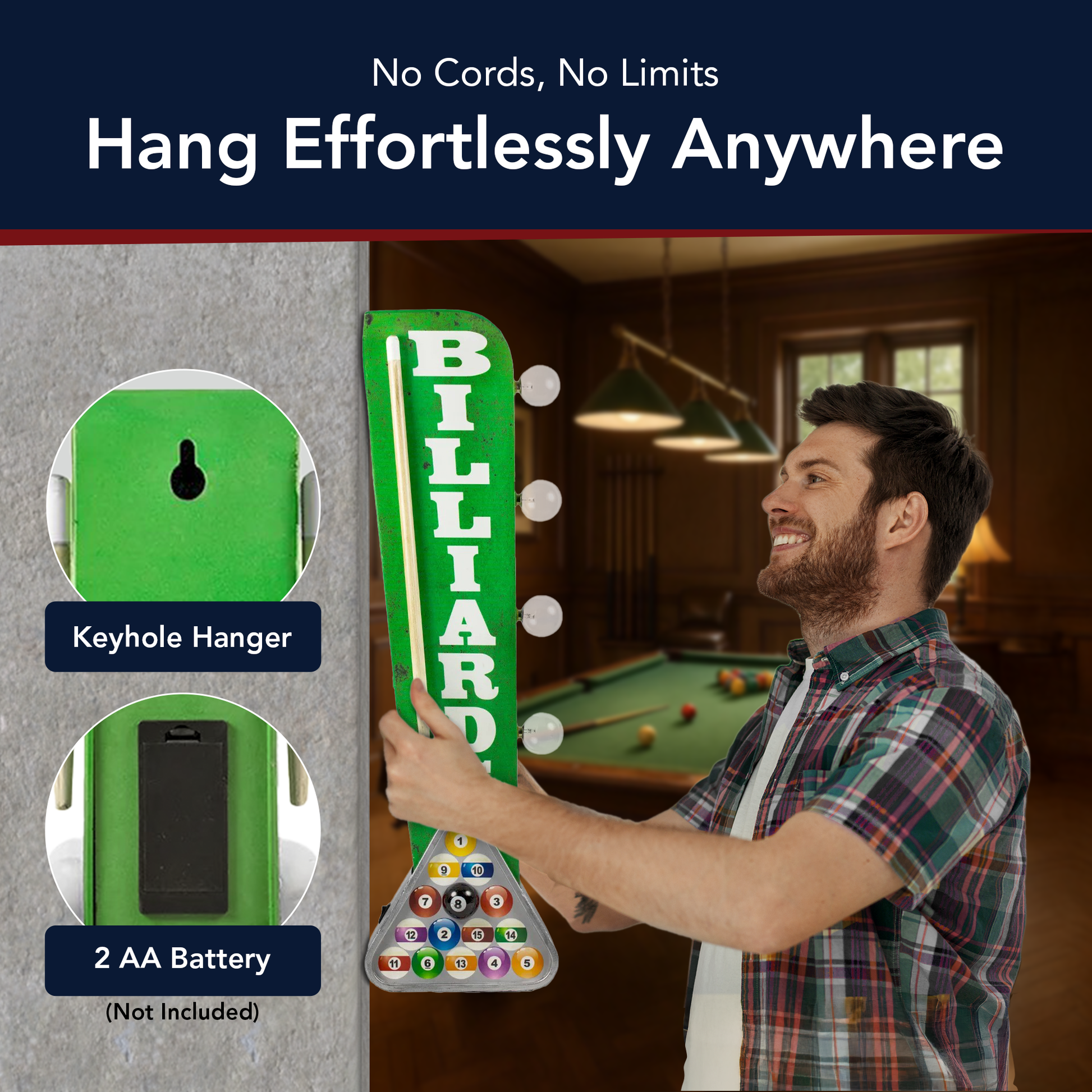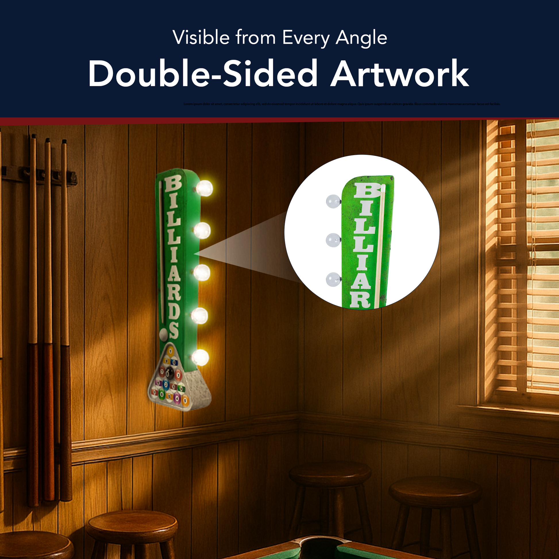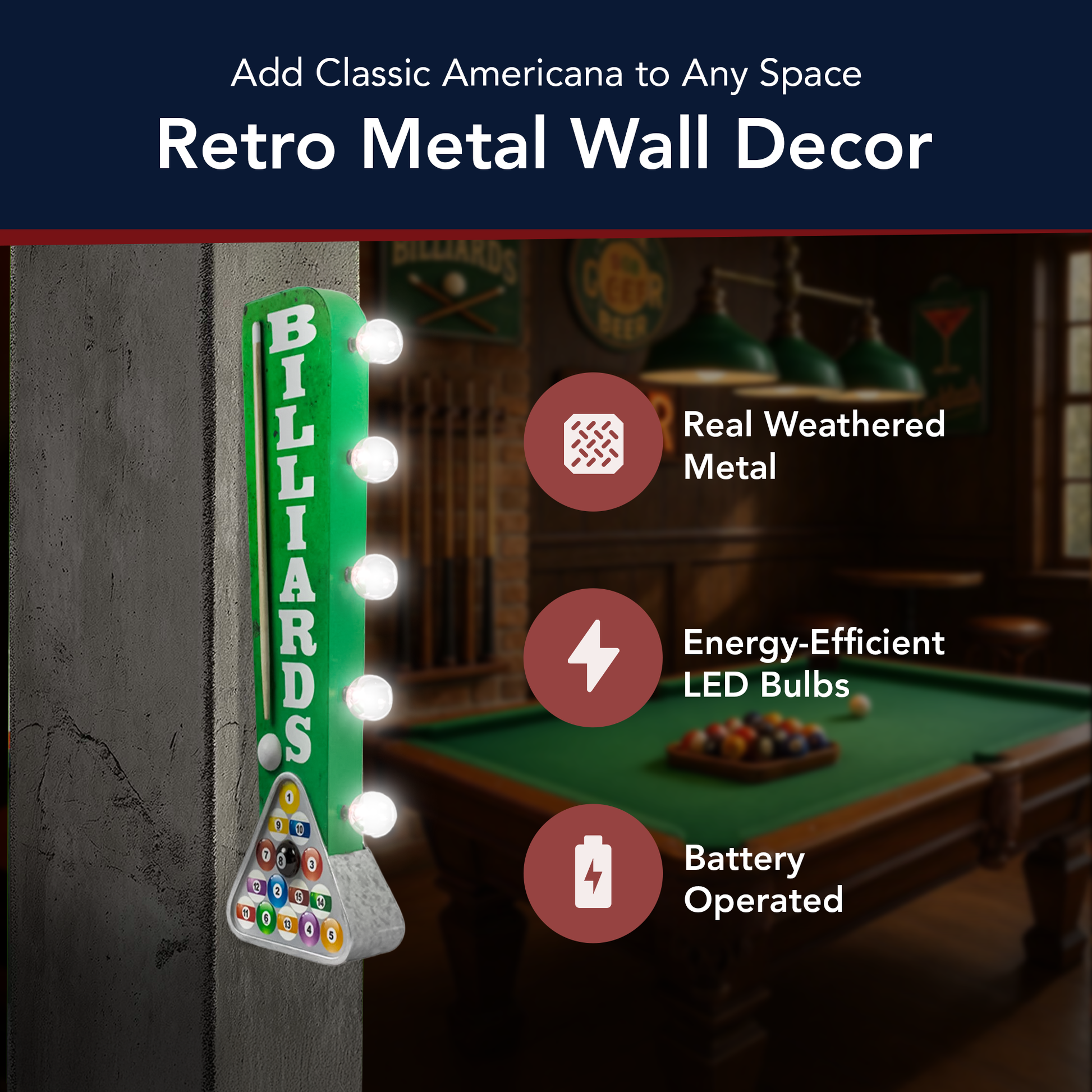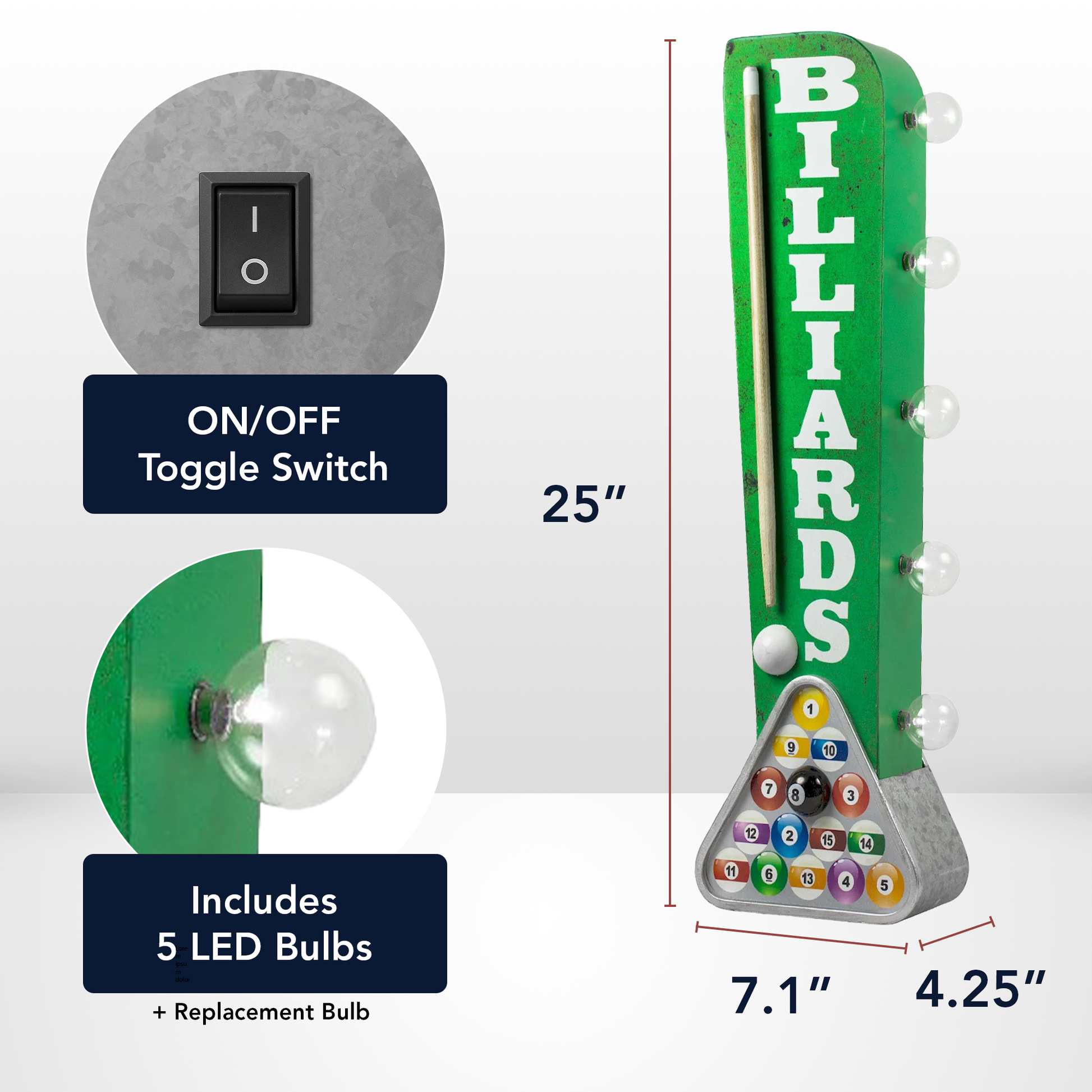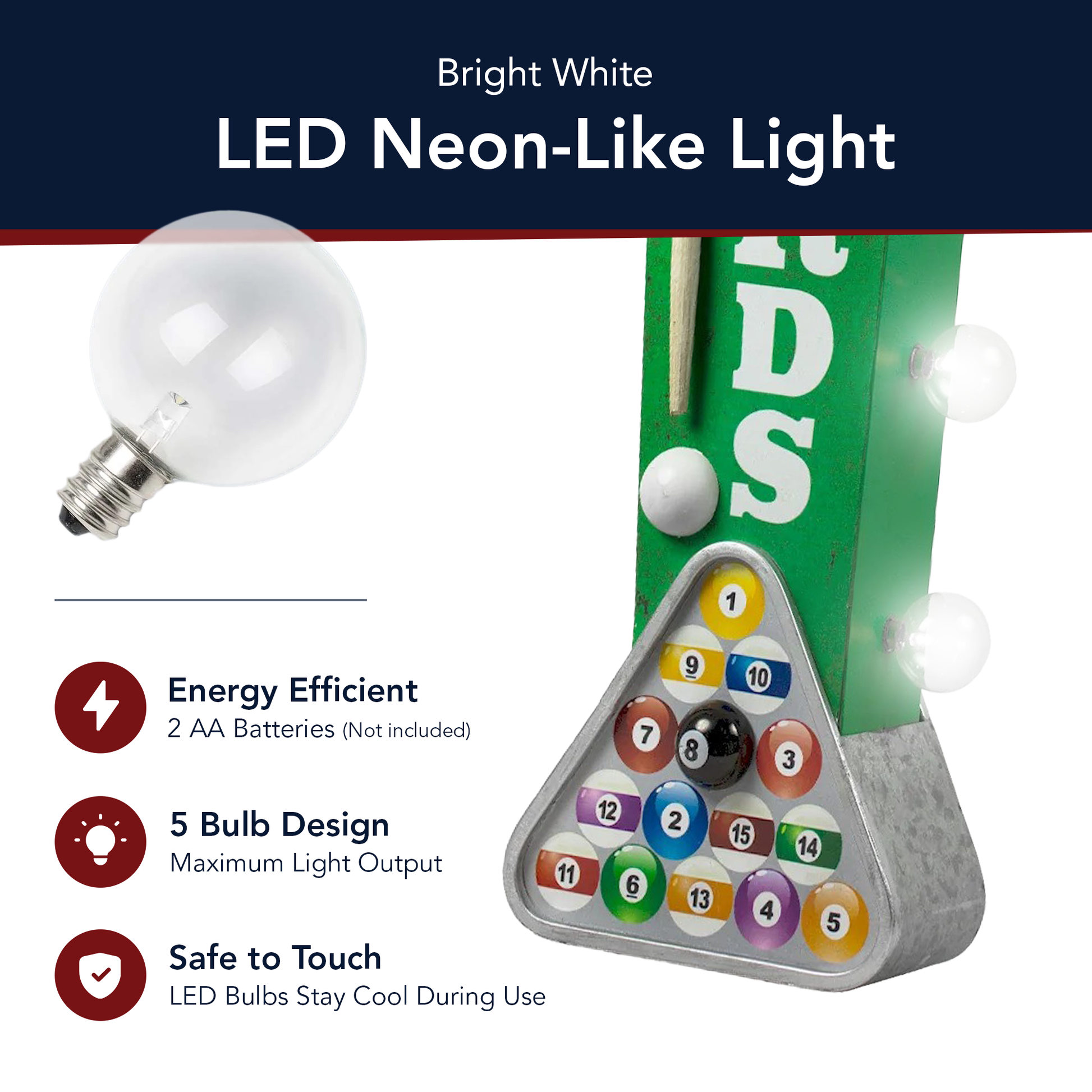 Vintage Billiards LED Marquee Sign Wall Decor (25” x 7”)