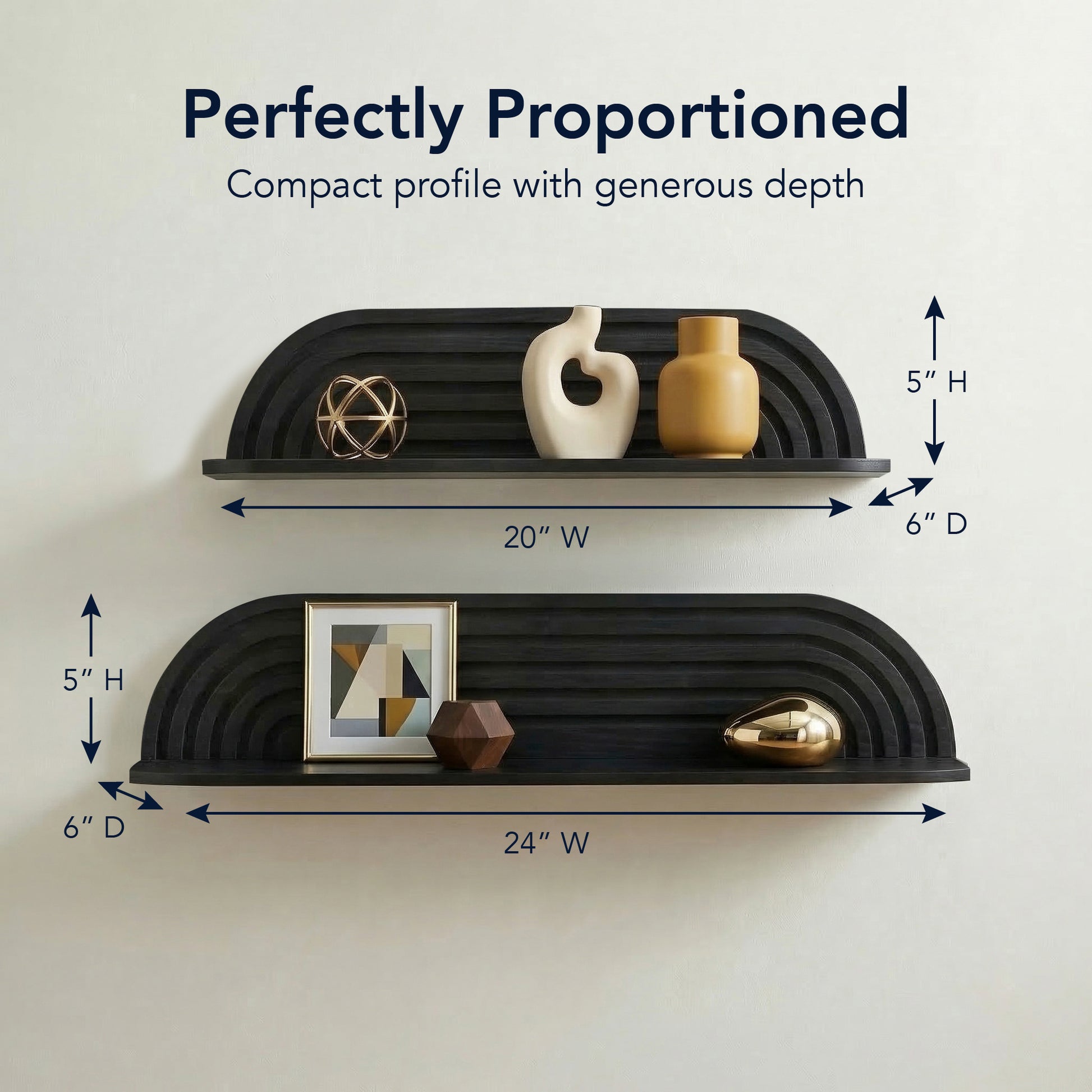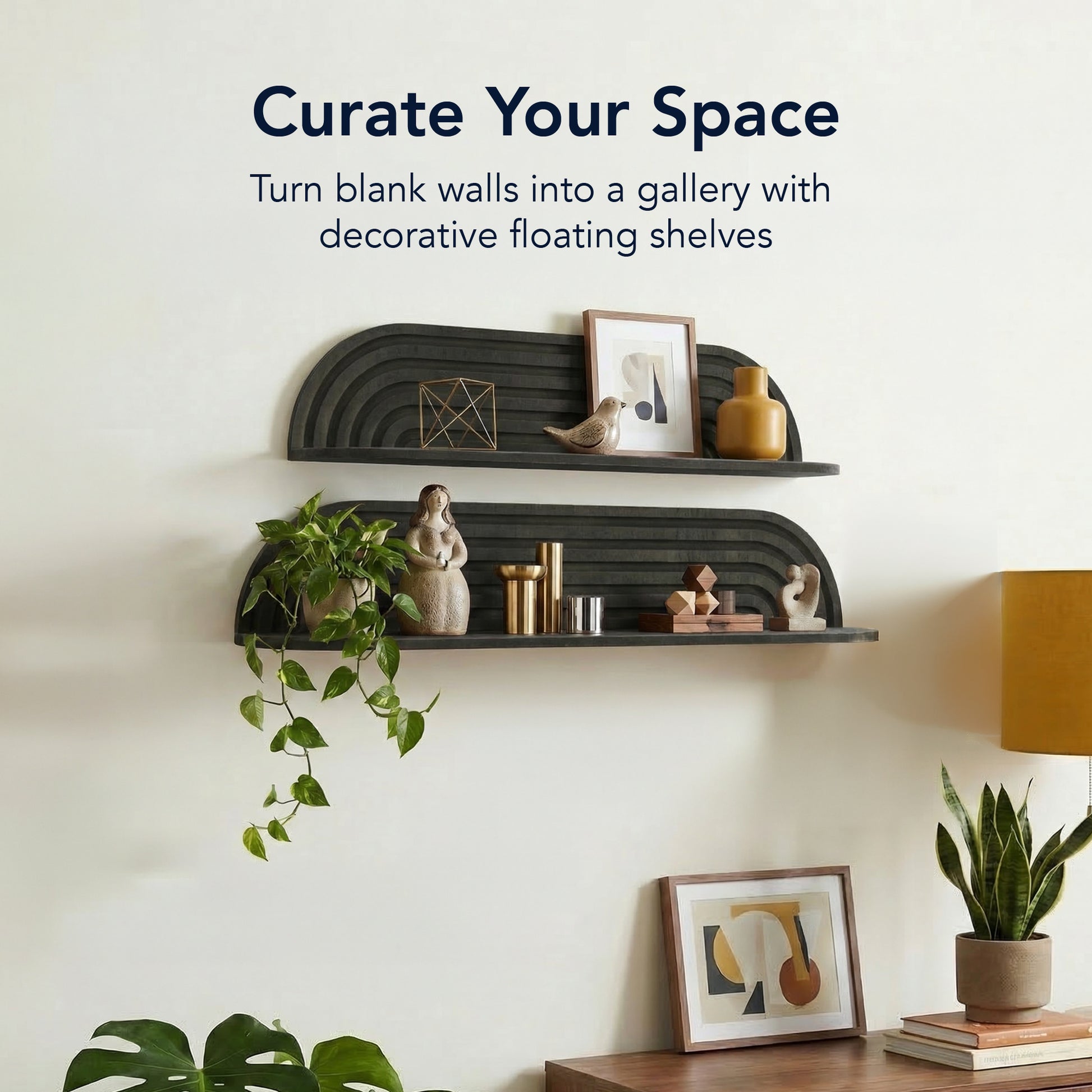 - SPACE-SAVING FLOATING INSTALLATION - Wall-mounted design keeps floors clear while providing decorative storage for books, plants, candles, and everyday essentials.