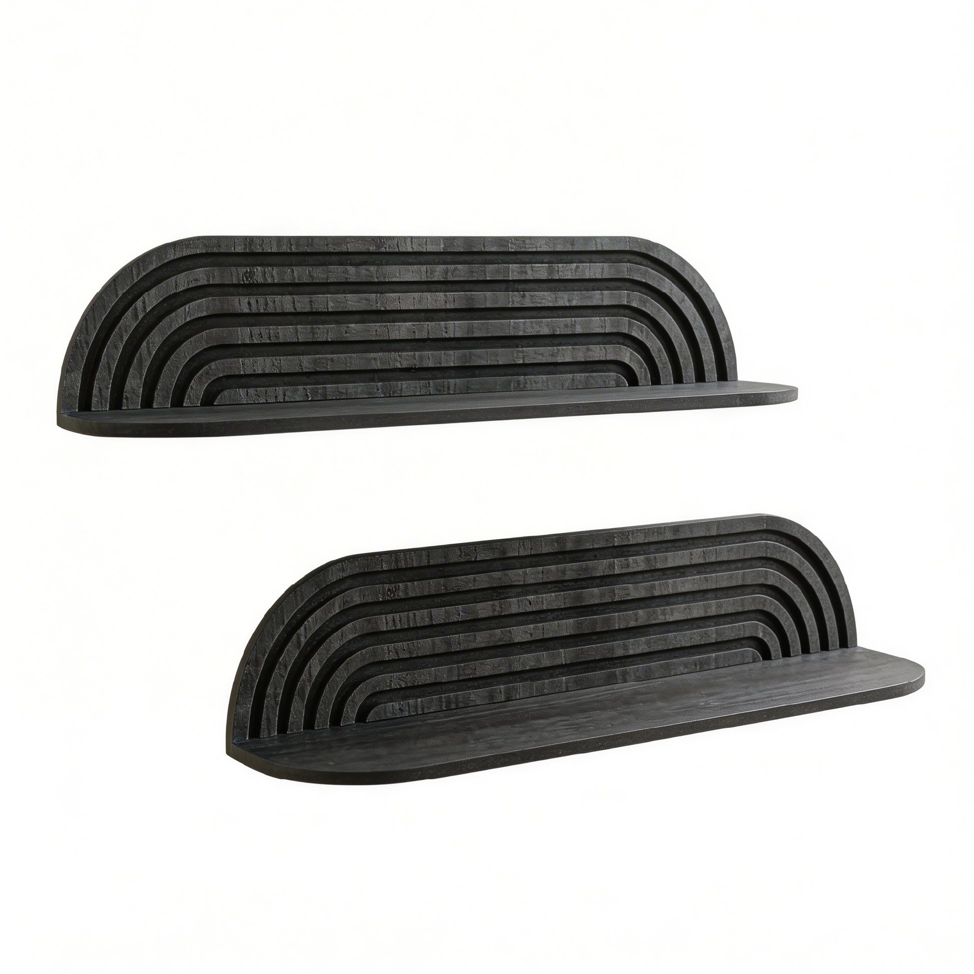 Add bold contrast and modern texture to your walls with the American Art Decor Horizontal Carved Floating Wall Shelf Set in Black. Designed with sculptural carved detailing and a sleek minimalist profile, these decorative wall shelves combine style and function for contemporary living spaces.Each shelf features a smooth horizontal groove design that adds depth and visual interest while maintaining a clean, understated silhouette. The deep black finish creates a striking statement against light or neutral walls, making these shelves a perfect accent for modern, industrial, Scandinavian, or minimalist interiors.