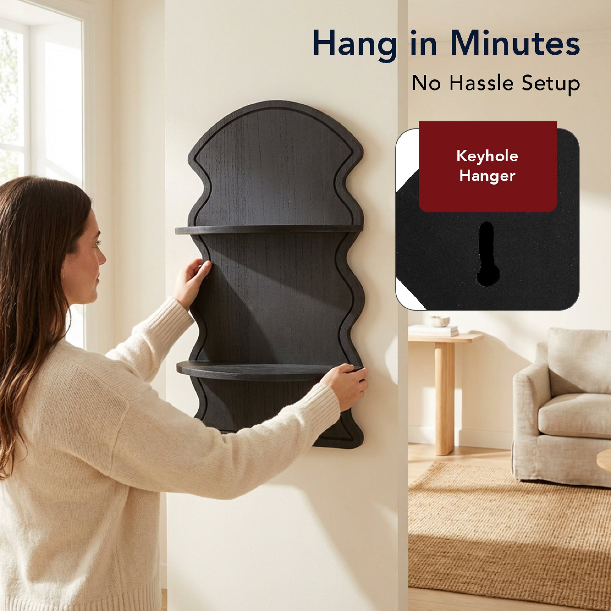 Crafted from durable engineered wood with a smooth sealed surface, it's easy to wipe clean and holds up to daily use. Built-in keyhole hangers on the back create a secure, seamless floating look once mounted. Hang one as a standalone wall decor piece or place a pair side-by-side for balanced wall shelves styling.
