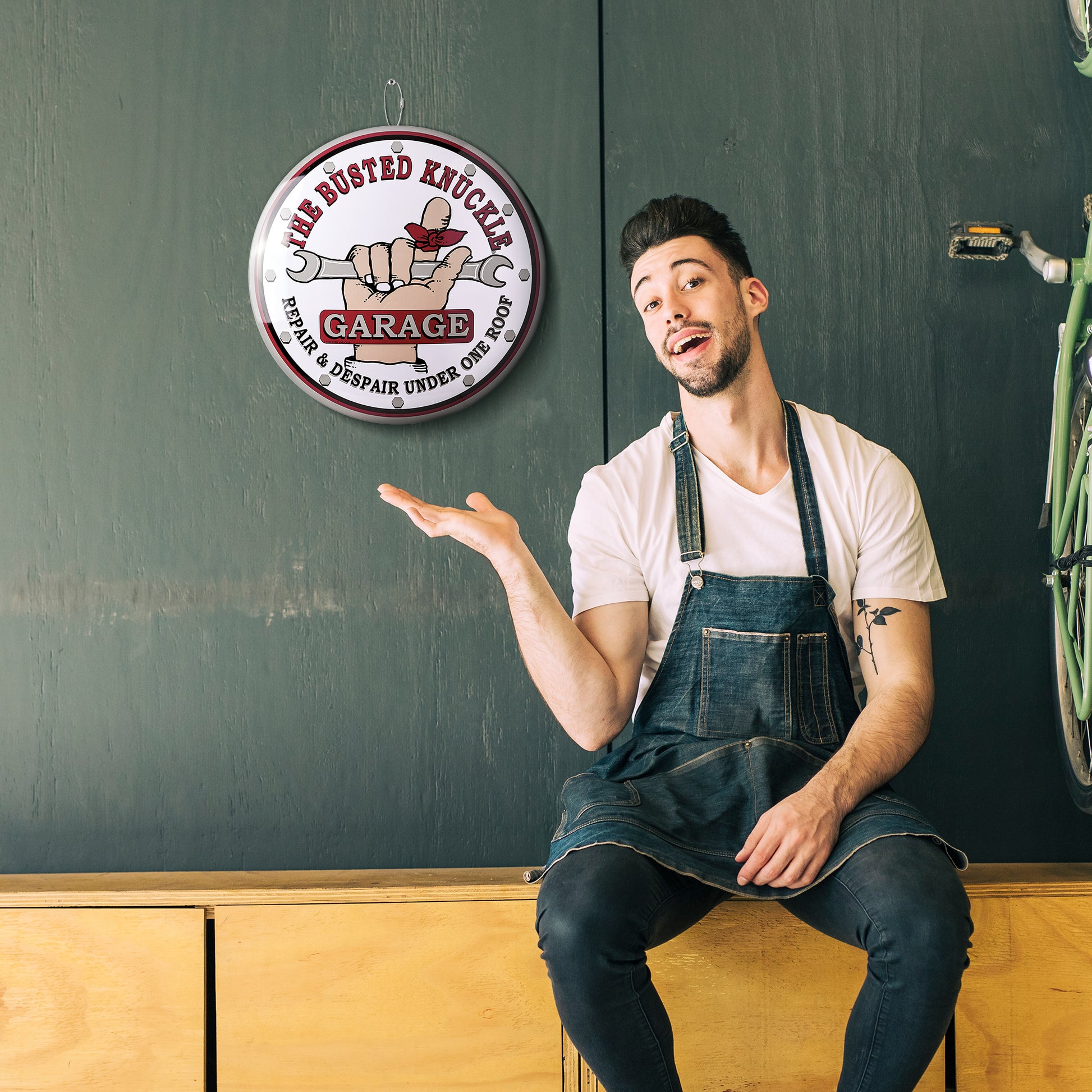 - Authentic Busted Knuckle Design: The bold, vintage Busted Knuckle Garage logo with distressed details makes this sign a head-turning centerpiece for your Man Cave, workshop, or garage.