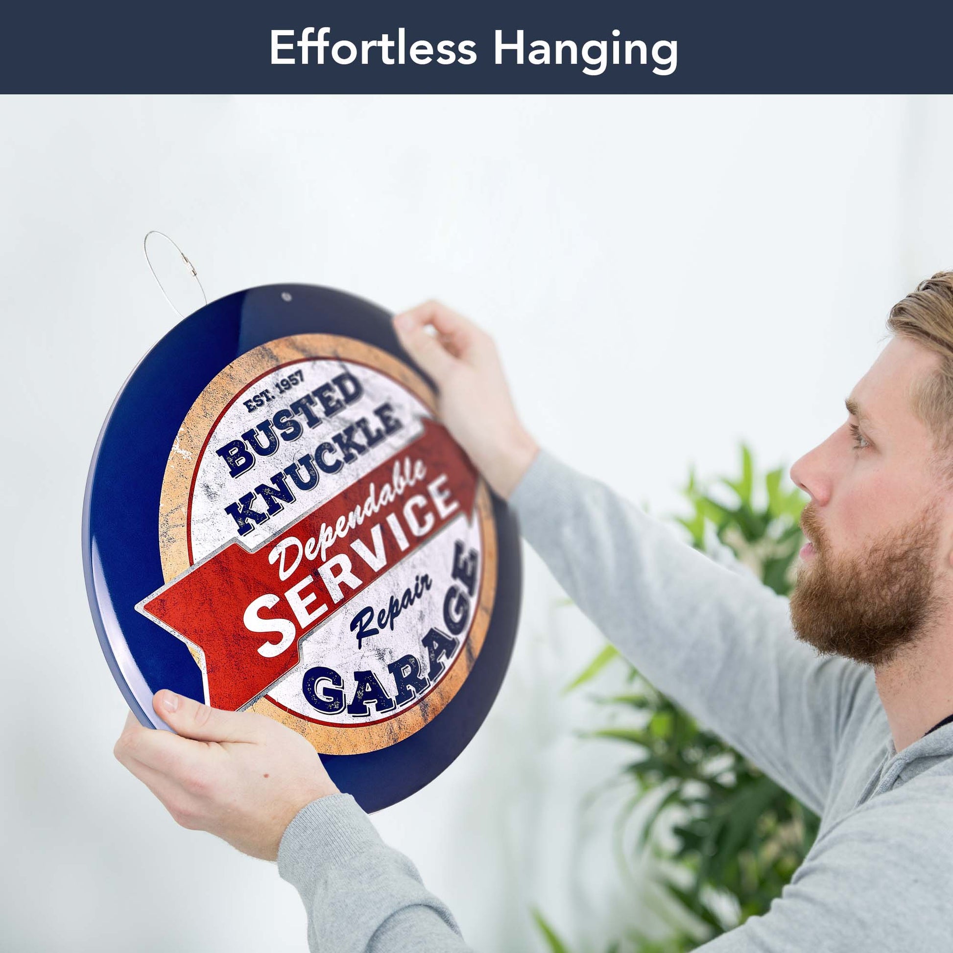 - Gear Up Your Space: This Busted Knuckle Repair Metal Dome is the ultimate finishing touch for guys who live for the smell of grease and the sound of tools clanking. Whether you’re customizing your Man Cave, organizing your garage, or sprucing up your workshop, this sign delivers style with zero fuss.