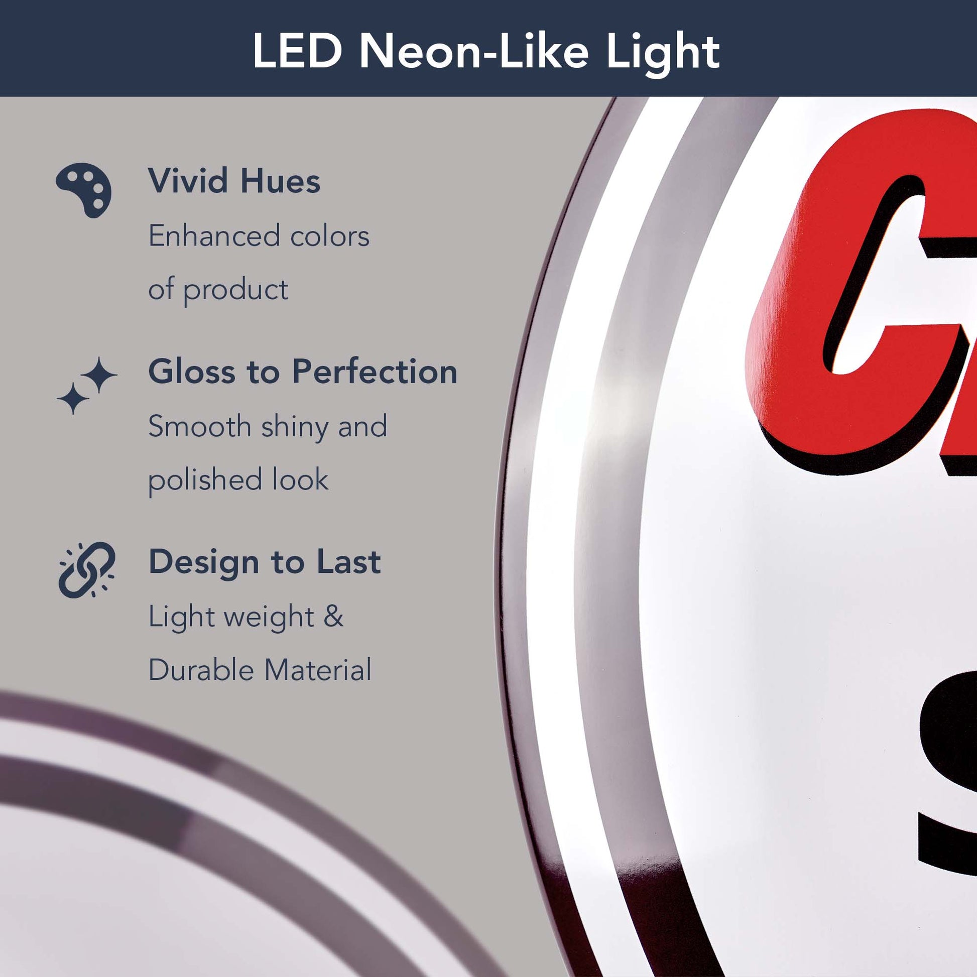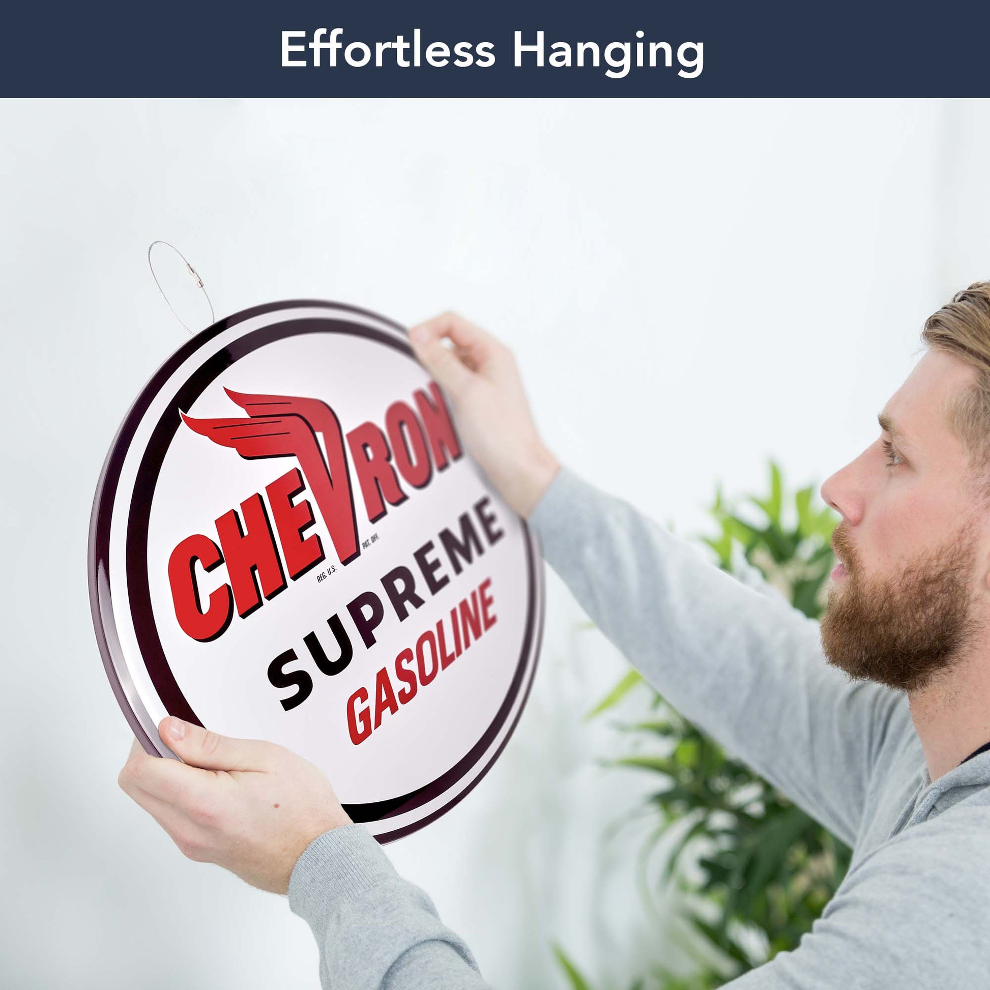 Add a touch of American muscle to your space with this Chevron Supreme Emblem Metal Wall Art. Designed for guys who appreciate the history of gasoline and style of classic cars, this 15" Chevron Logo Emblem is the perfect addition to your Man Cave, garage, or workshop. Its lightweight and easy-to-hang design make setup a breeze - no heavy-duty tools or anchors needed. Just pure, Vintage Wall Art that brings the legend of Chevron Supreme to life.