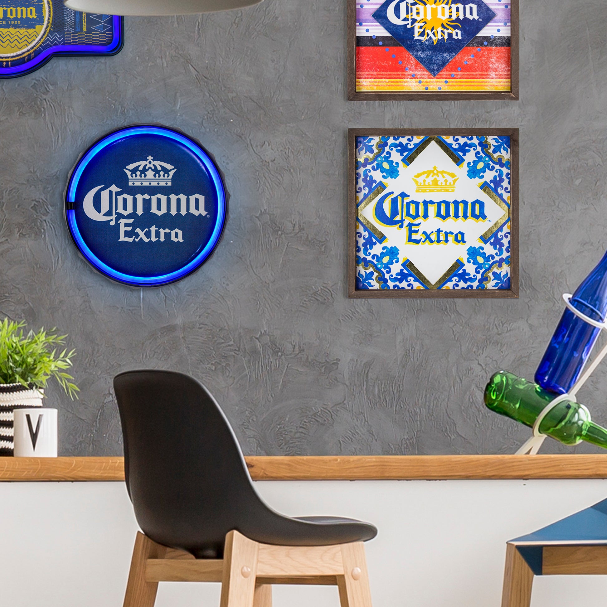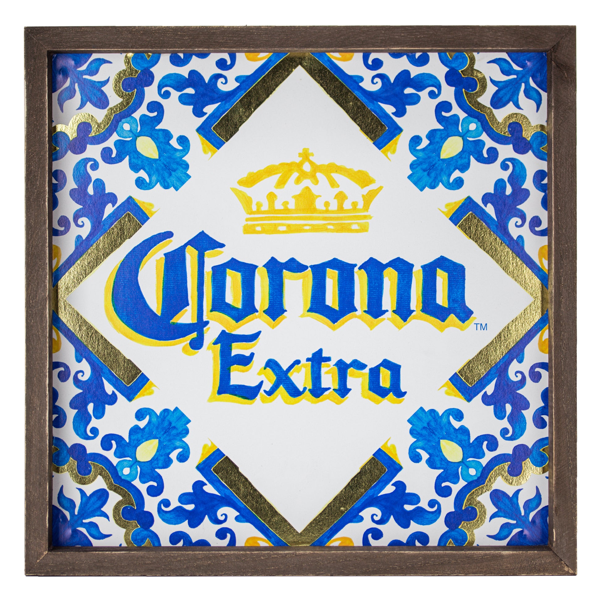 - Print on MDF – With a catchy and graphic rendition of the Corona Extra beer logo printed on medium-density fiberboard, this makes the piece look like a hand-painted tile that is set in front of beautiful background and inset with a stylish frame.