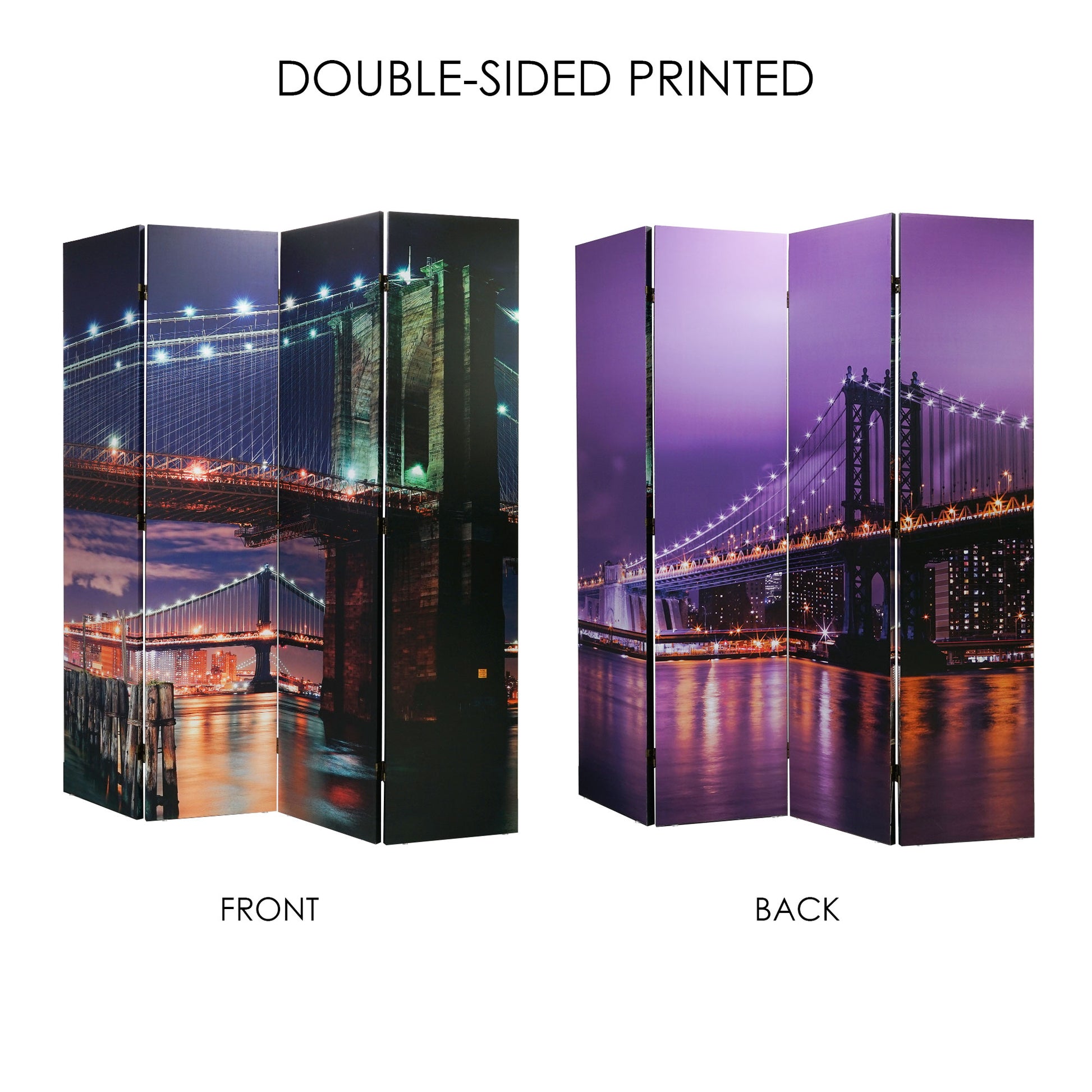 - DOUBLE-SIDED PRINTED CANVAS ROOM DIVIDER - Our multi-colored stunning Brooklyn Bridge print four-panel canvas room divider is a work of art that doubles as a functional room divider, perfect for any home or office.