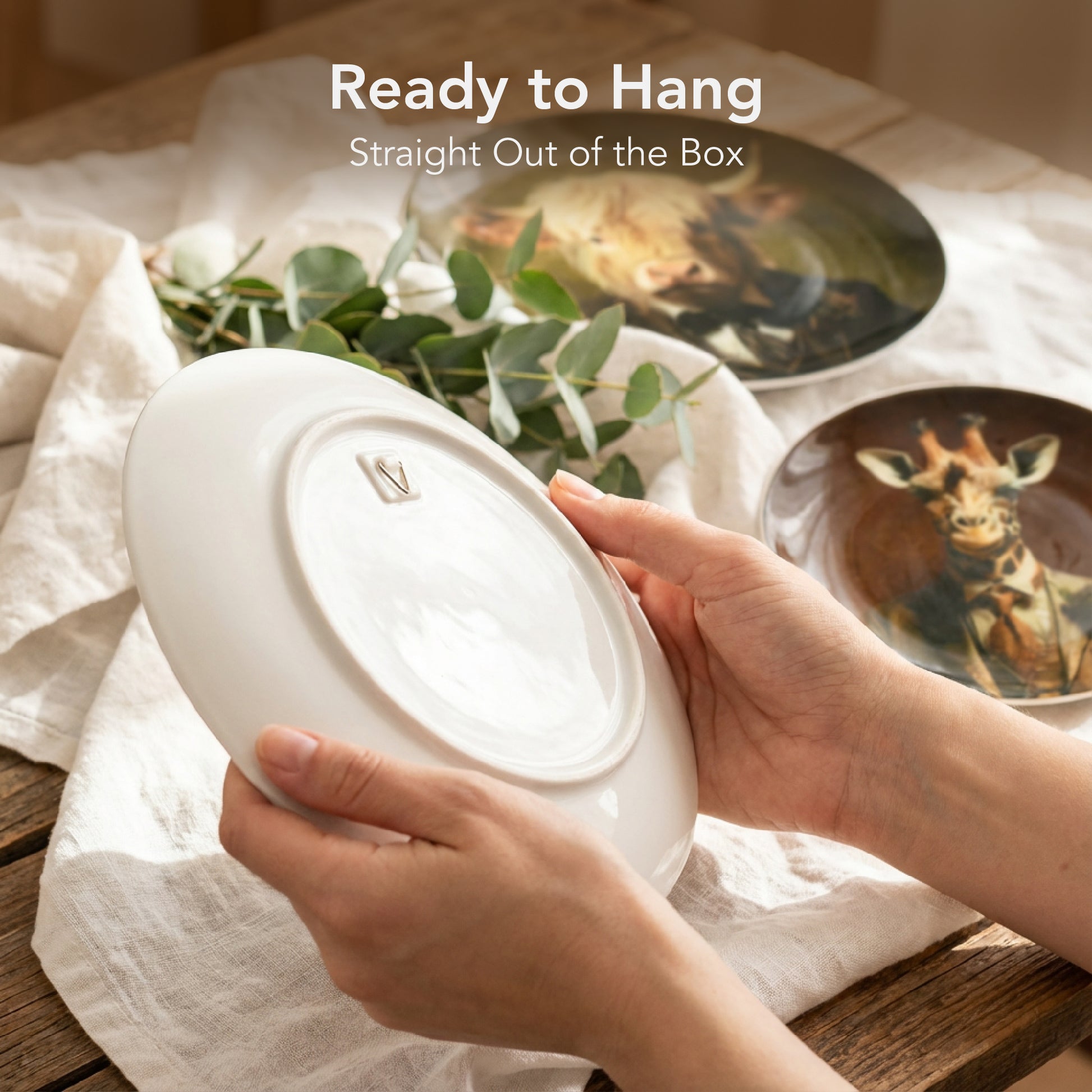 - BOLD STATEMENT ANIMAL PORTRAITS - Transform your walls with whimsical ceramic plates featuring a Highland cow, goat, and giraffe dressed in elegant suits. Their aristocratic, anthropomorphic portraits add humor and style, making them standout conversation pieces for home, office, or bar decor.