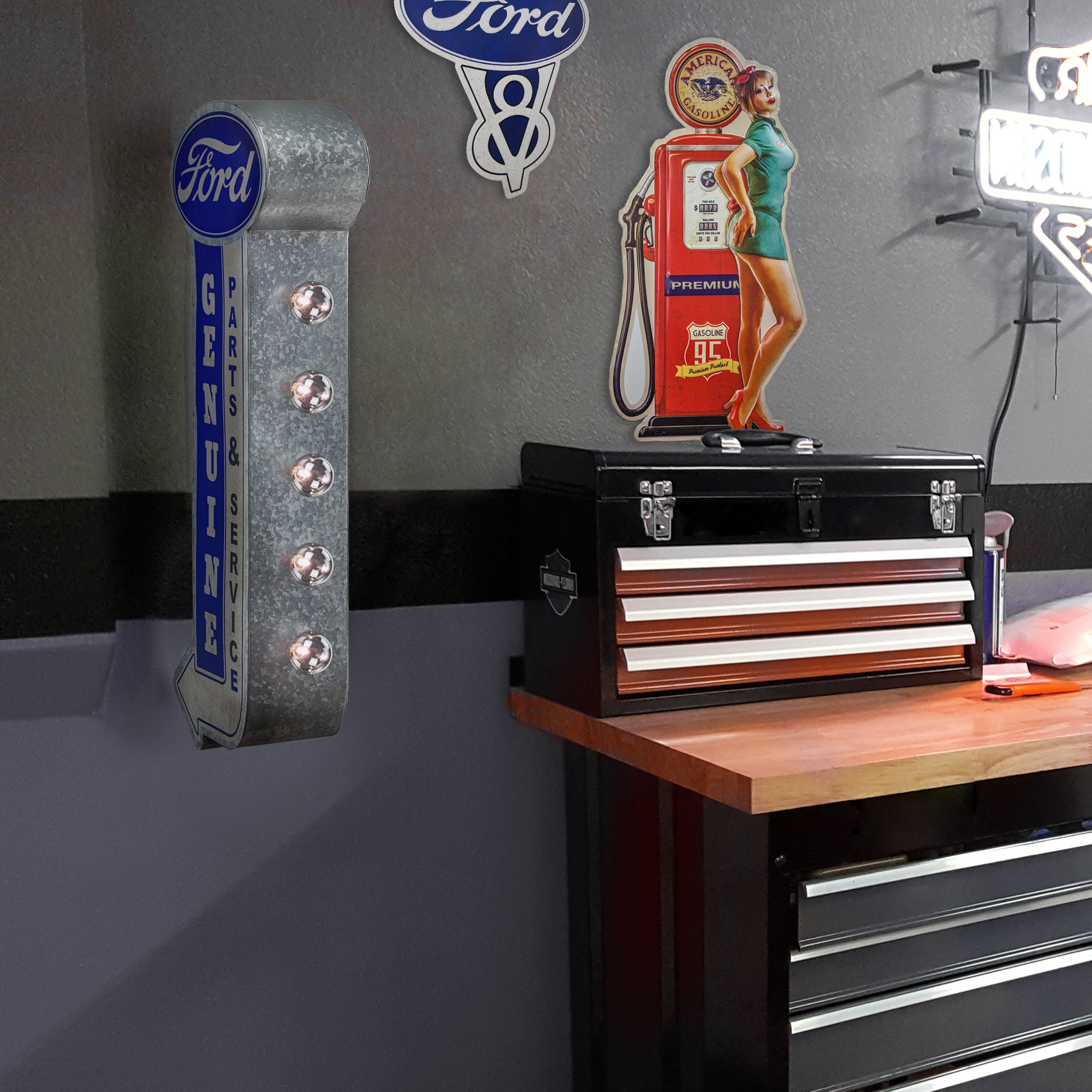 Show off your love of Ford products with this vintage-inspired Genuine Parts & Services Ford LED marquee sign.