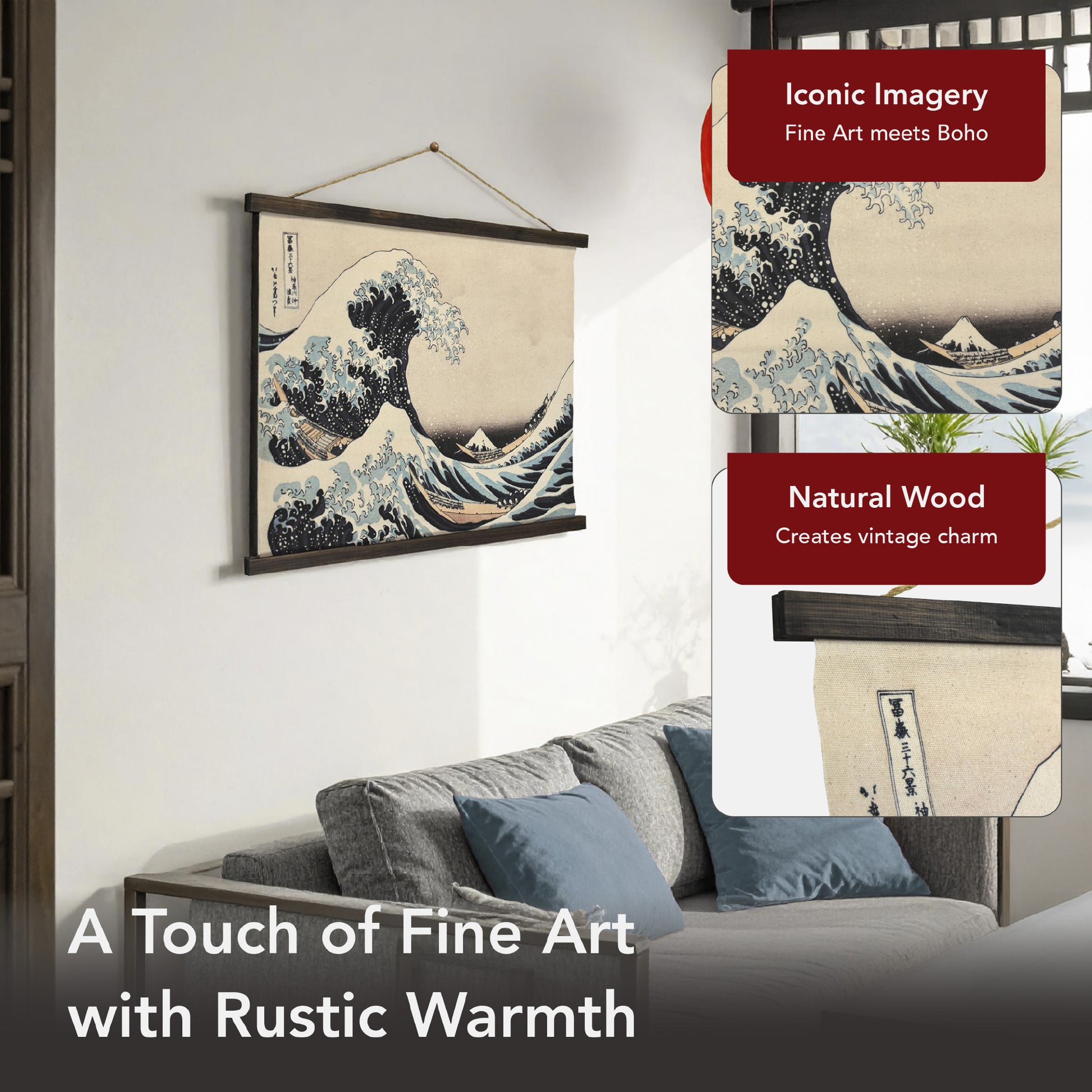 - Iconic Japanese Art Print: Features The Great Wave off Kanagawa by Hokusai-a world-famous Japanese woodblock print known for its bold lines and deep symbolism.