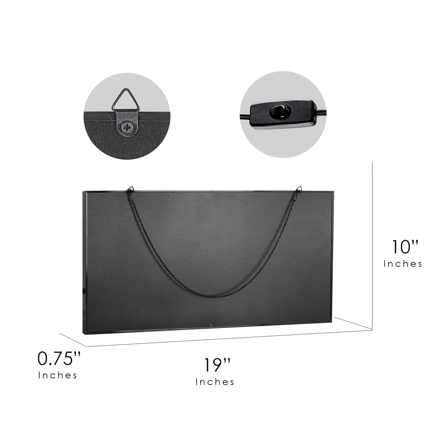 - Framed & ready to hang - This LED sign comes in a slim black frame and prepared with hardware for hanging. It is well-made yet lightweight, making for easy shipping and mounting.
