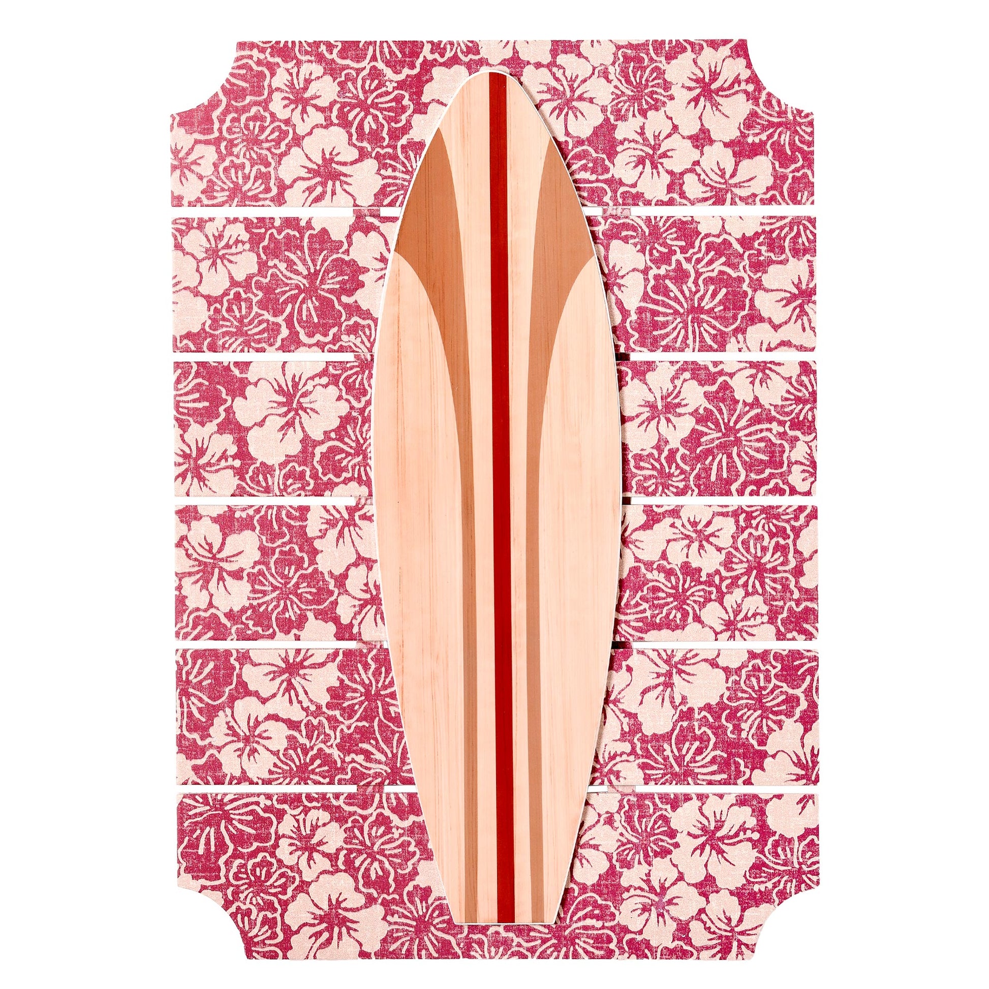 Kona Coast by Reyn Spooner Biscus Bounty Red Surfboard on Plaque Wall Art - 14" x 20"