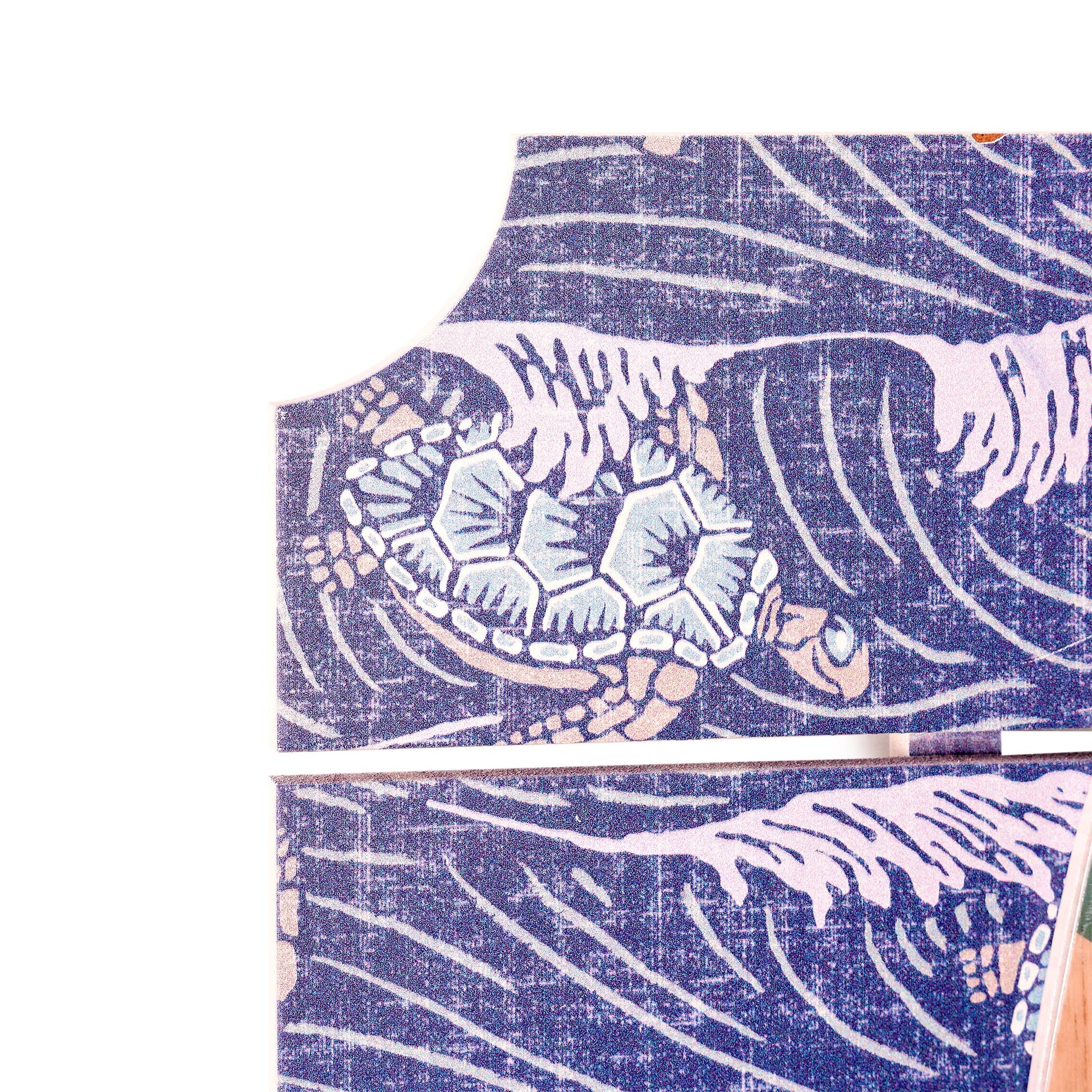 Kona Coast by Reyn Spooner HONU 'AUKAI Horizon Blue Surfboard on Plank Wall Art - 14" x 20"