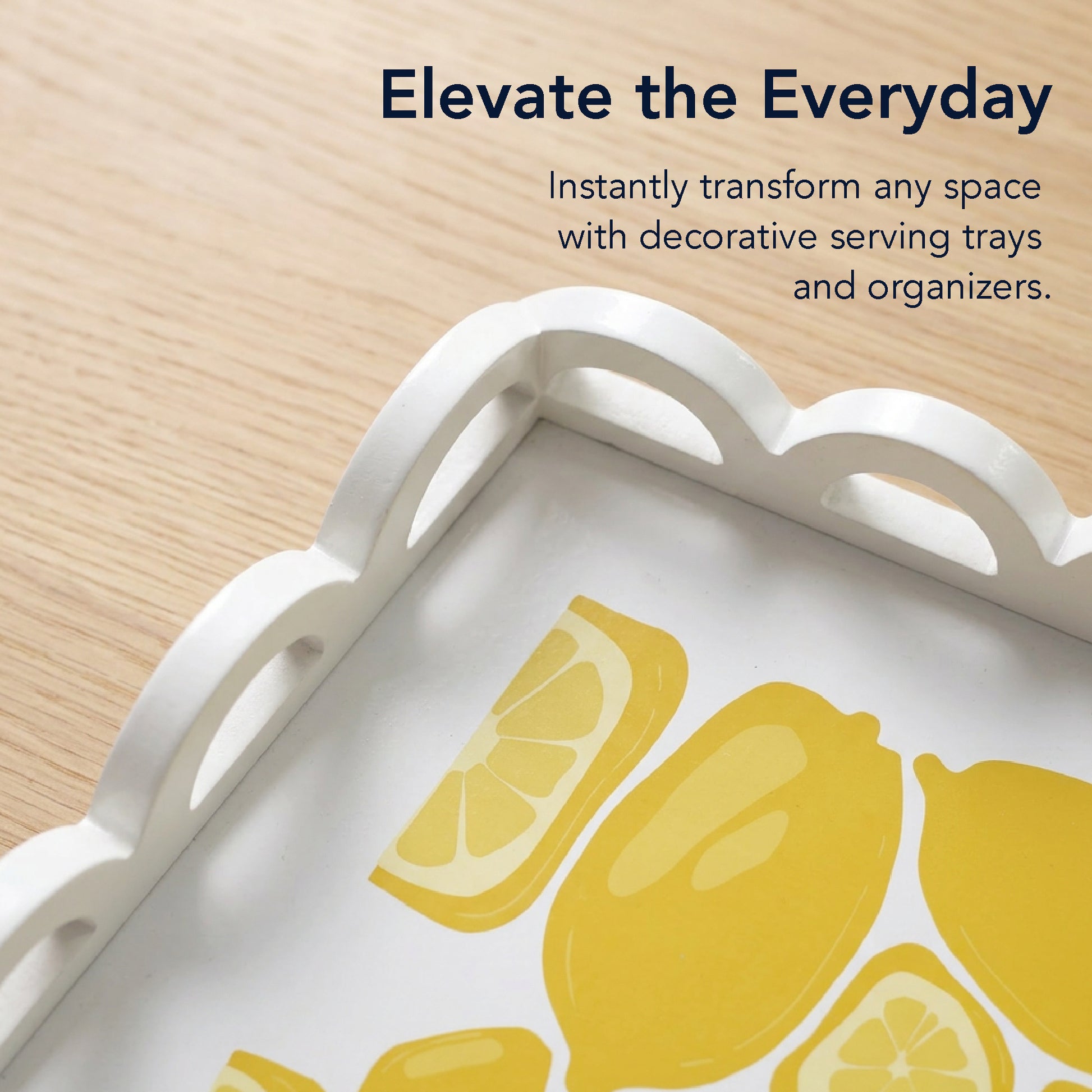 - BRINGS FRESH, CHEERFUL STYLE TO ANY SPACE - Lemon and lime citrus patterns paired with elegant scalloped edges instantly brighten kitchens, bathrooms, coffee tables, and vanities with vibrant seasonal charm.
