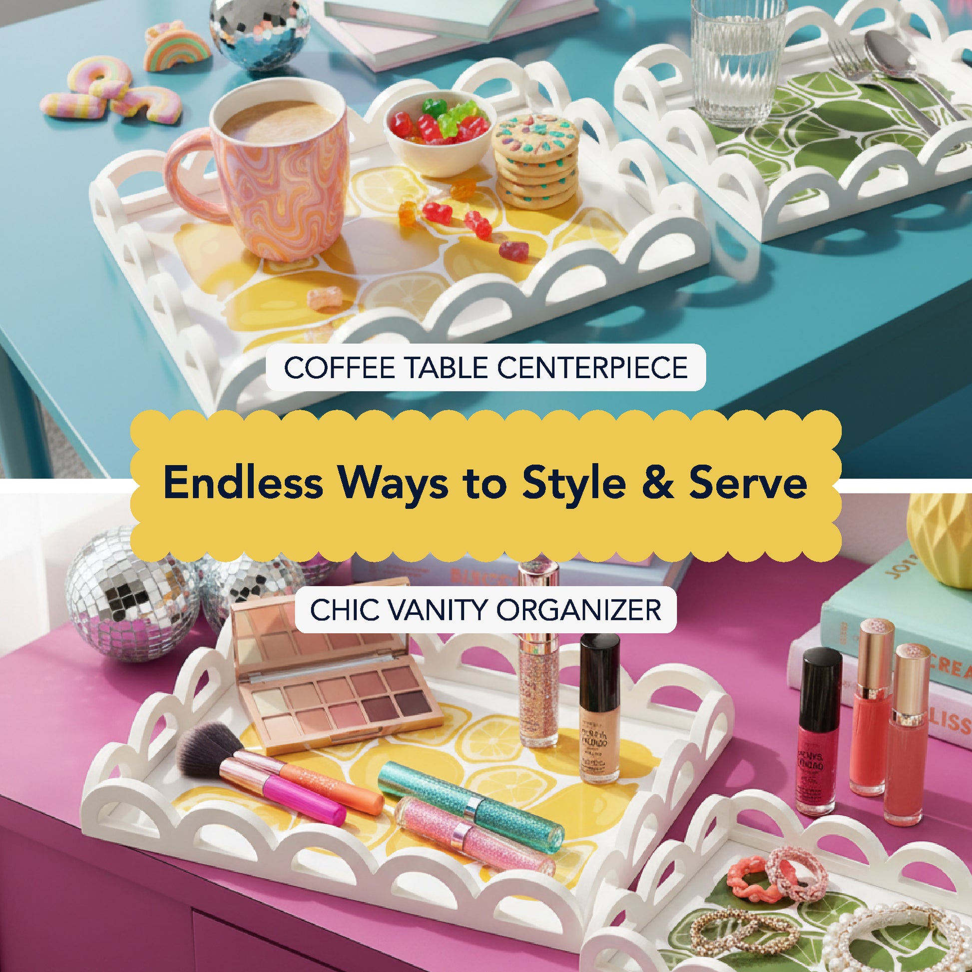 - COORDINATED 2-PIECE SET FOR FLEXIBLE STYLING - Use trays together for layered displays or separately across multiple rooms to create a cohesive, polished decor look.