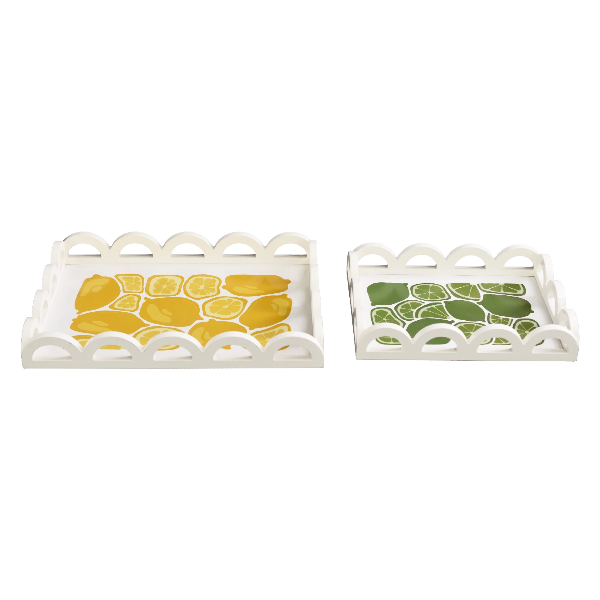 Lemon Lime Scalloped Serving Tray Set, Wood Decor (2pc)