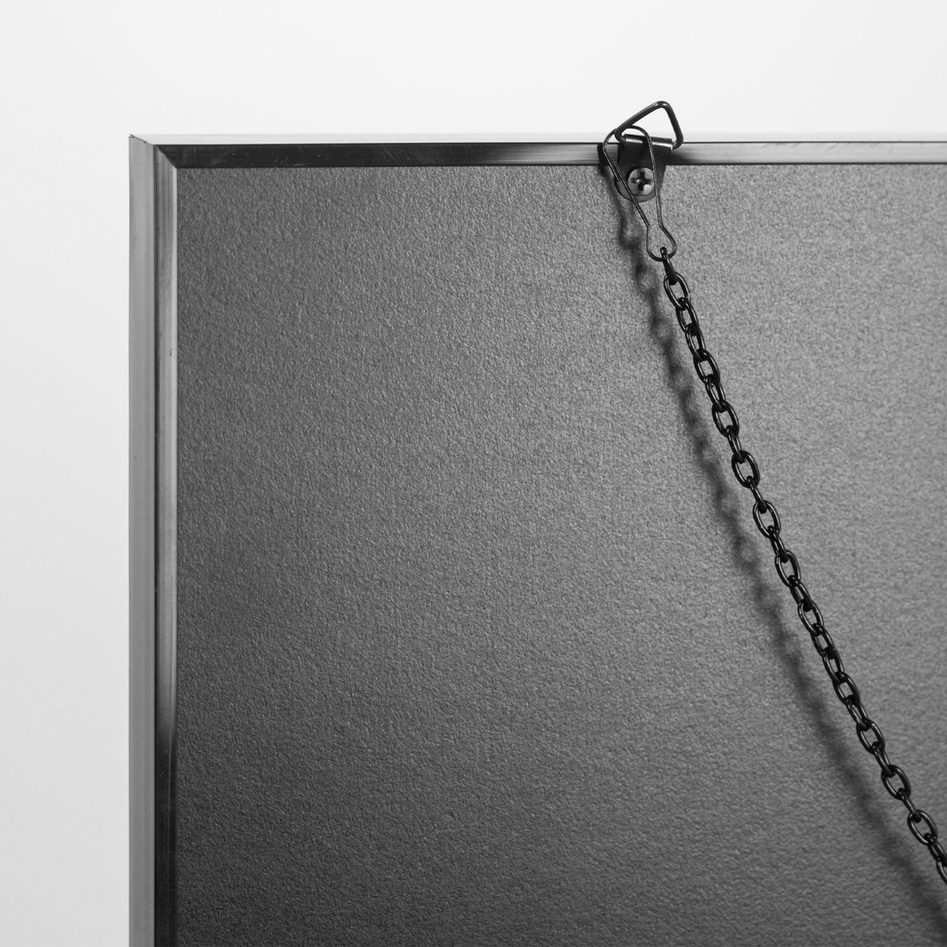 - READY TO HANG – Outfitted with two triangle hooks and a metal chain for easy mounting, this piece is a cinch to hang.