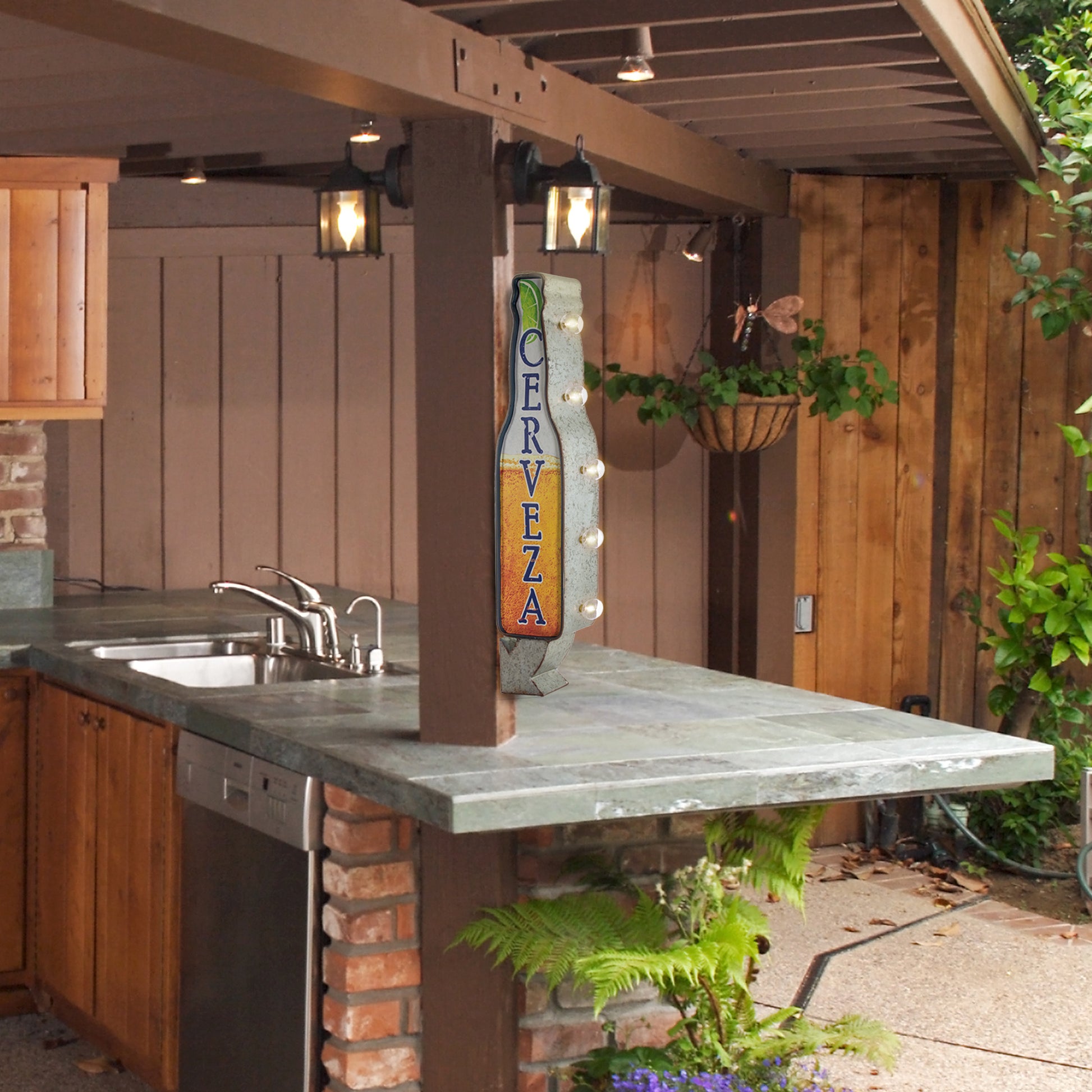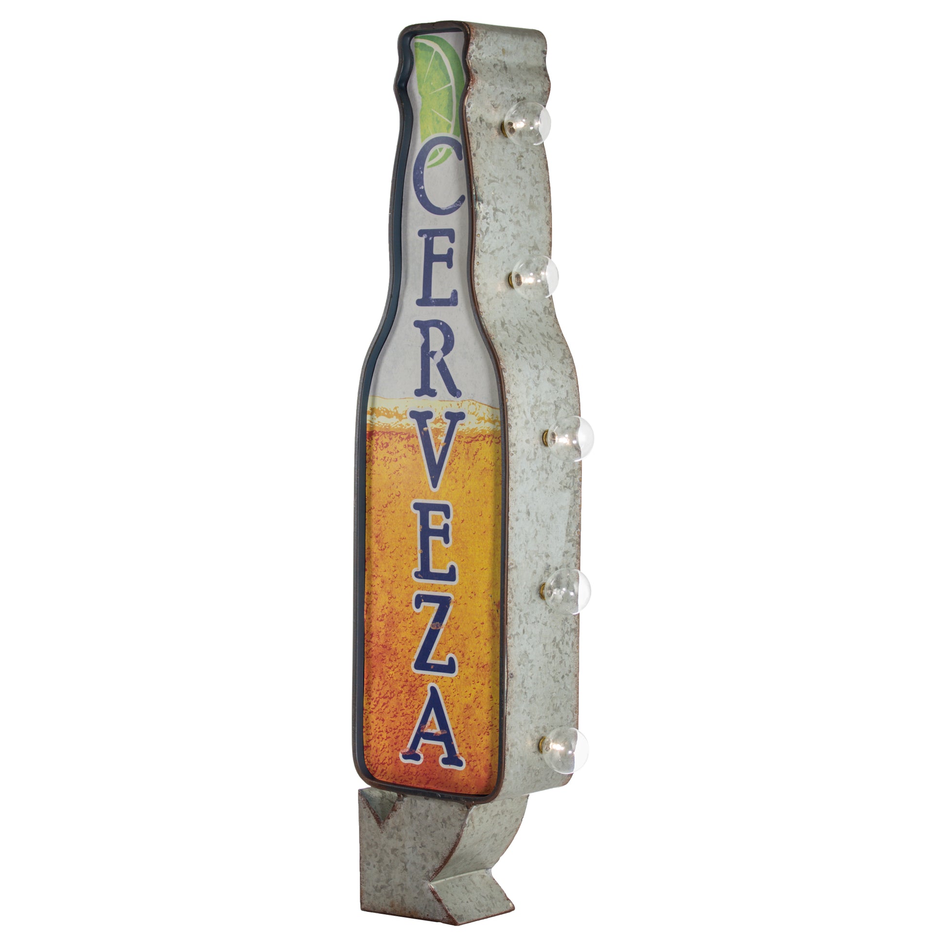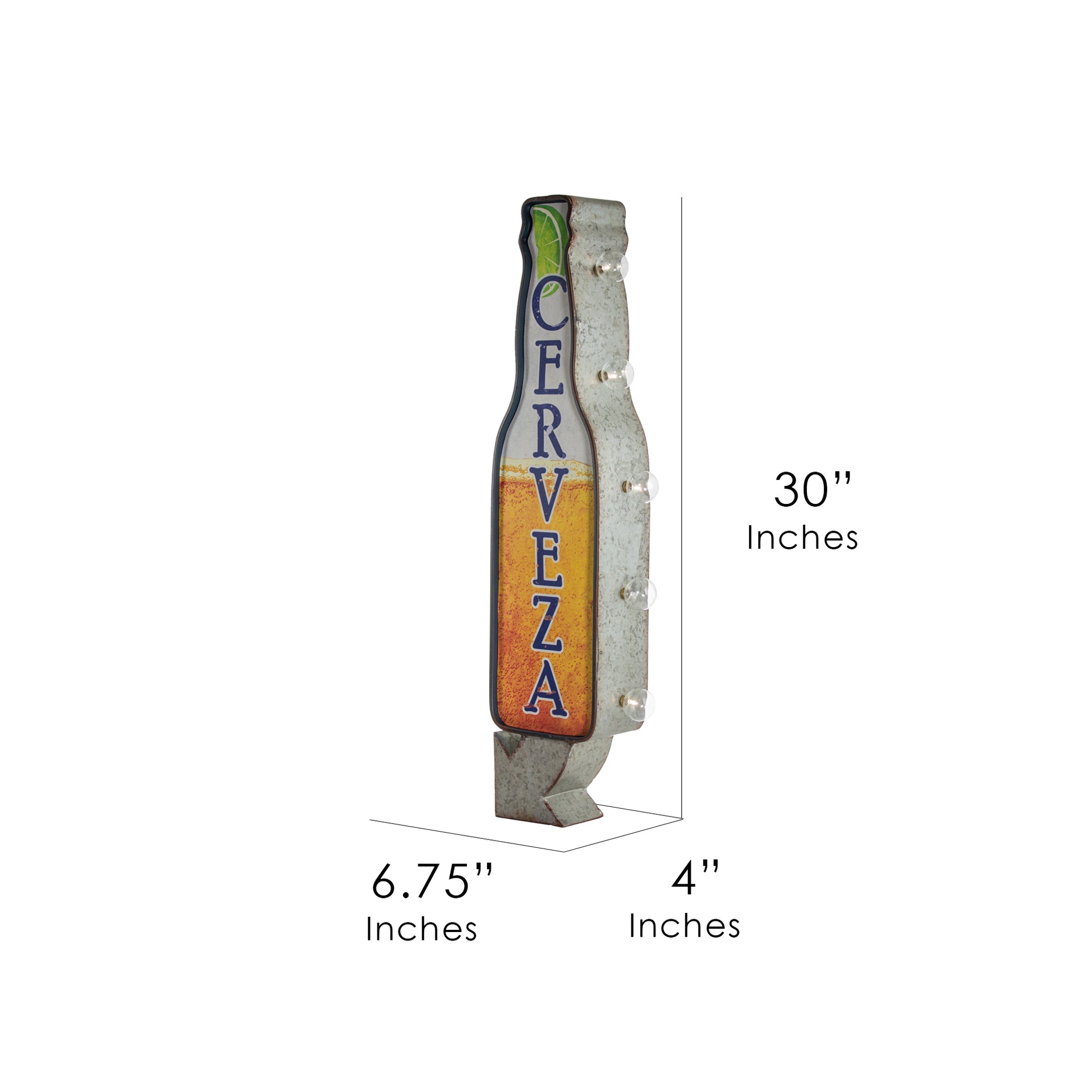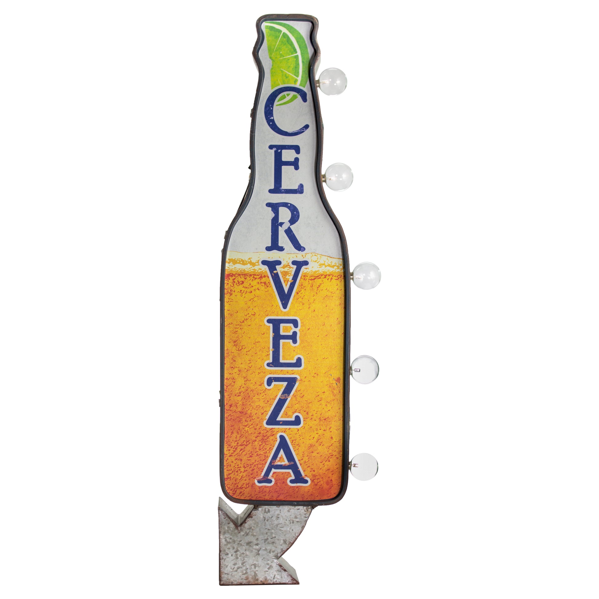 With the words "Cerveza" running down the center of the effervescent libation, this colorful and catchy signage is sure to make a lasting impression for your favorite drinking spot; the comfort of your own home.