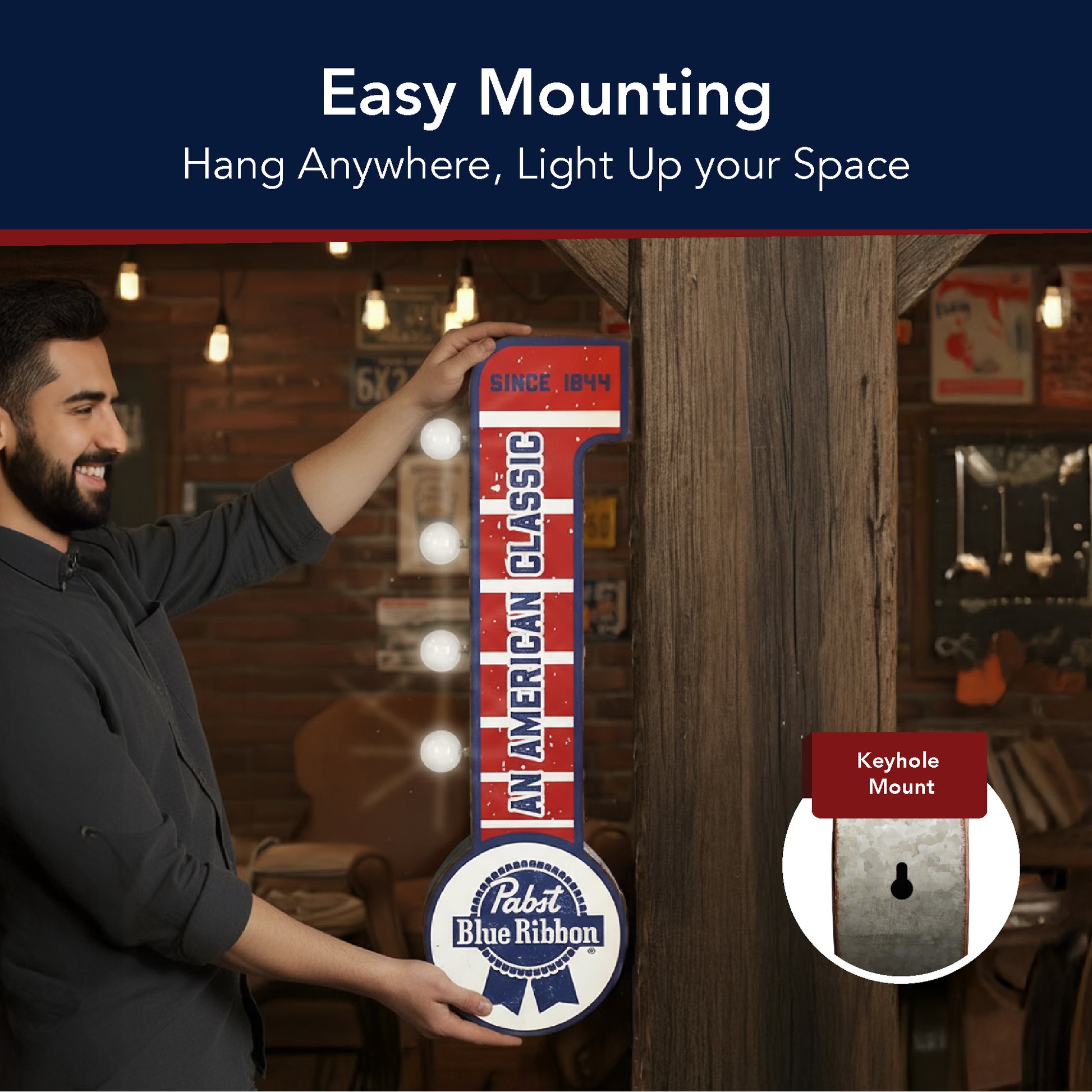 - RETRO-INSPIRED DESIGN - Features the iconic Pabst Blue Ribbon logo and "SINCE 1844" text, capturing the essence of vintage Americana.