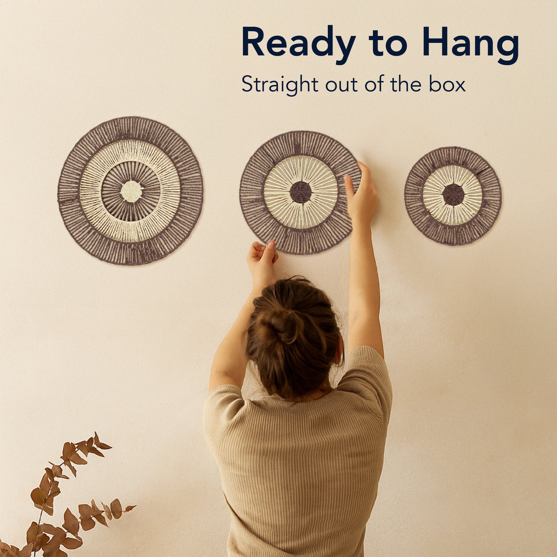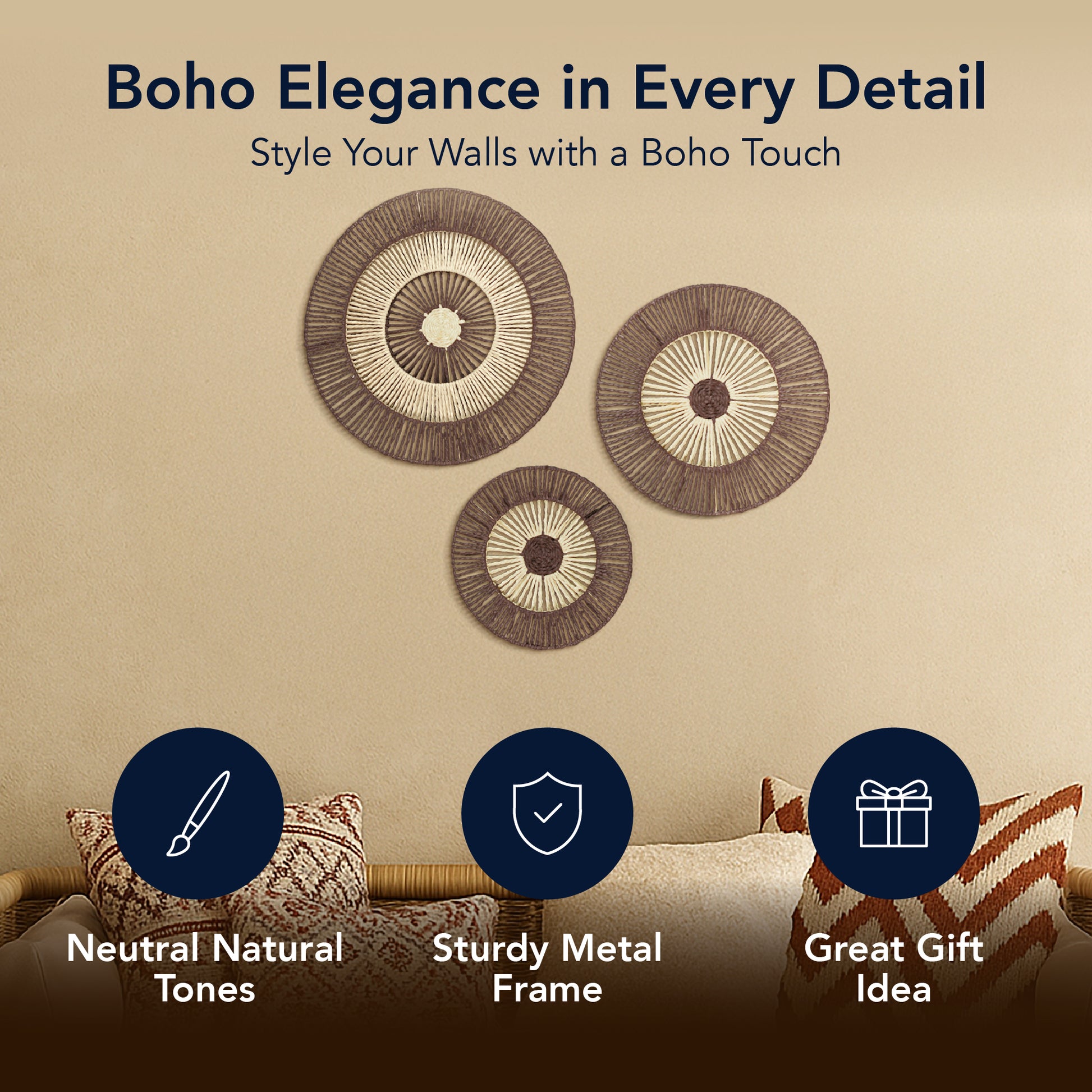 Paper Rope Wall Decor Set of 3 Natural - Boho Wall Art, Farmhouse Basket Style