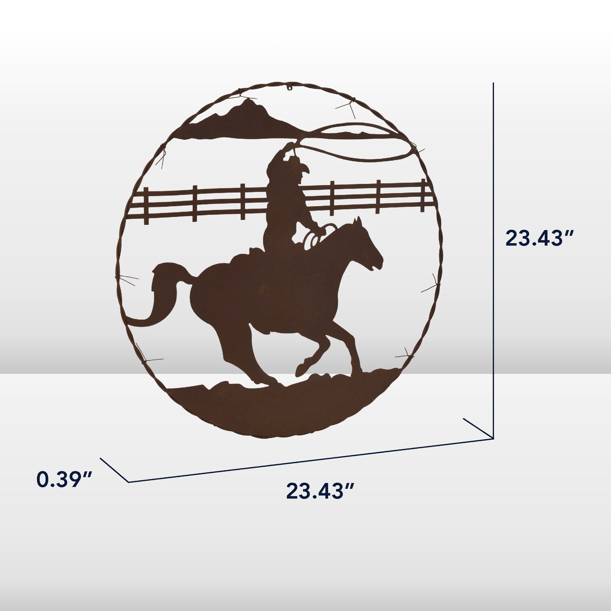 Feel the spirit of Western heritage come to life with the ProRodeo Cowboy Metal Wall Art-a tribute to rugged rodeo culture and rustic farmhouse style. This striking piece features a cowboy mid-lasso atop a galloping horse, all enclosed within a circular frame that mimics barbed wire. Below, the bold ProRodeo branding grounds the design in authenticity-and conveys a sense of Americana you'll be proud to display.Crafted from durable metal, this piece effortlessly enhances wall decor across living rooms, bedrooms, entryways, offices, or even outdoor porches-instantly elevating your home decor with Western-inspired flair. It's perfect for western home decor themes, urban cowboy aesthetics, or country farmhouse spaces that need a bold accent.