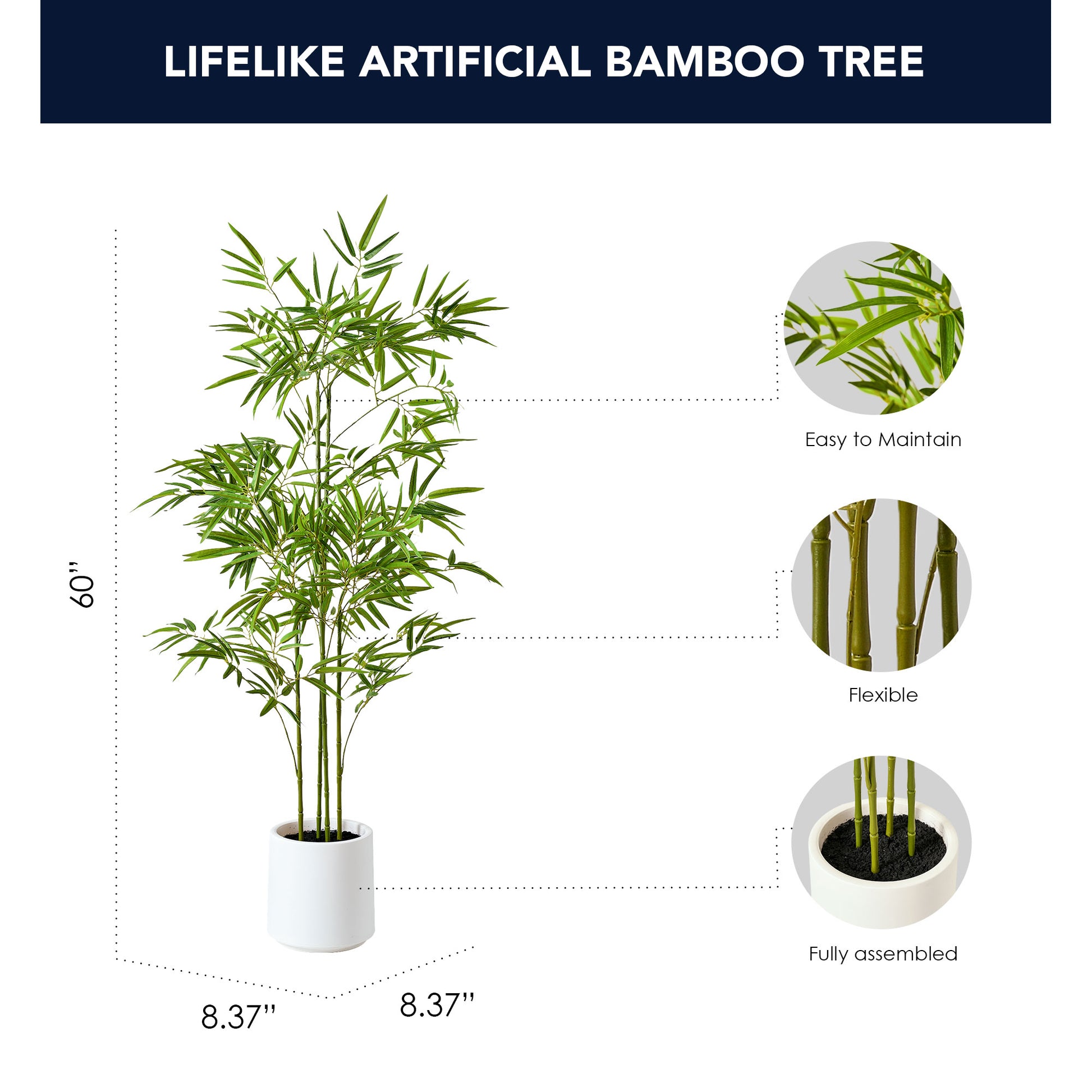 Realistic Artificial Bamboo Tree Faux Plant in a White Pot - 60" - Botanica Home