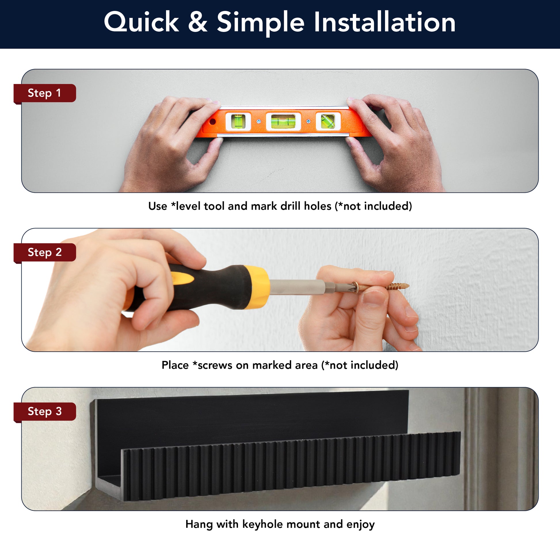 - EASY TO MOUNT, ADJUSTABLE PLACEMENT - Pre-drilled holes and included hardware make installation quick. Mount individually or in a graduated style to suit wall composition and display needs.