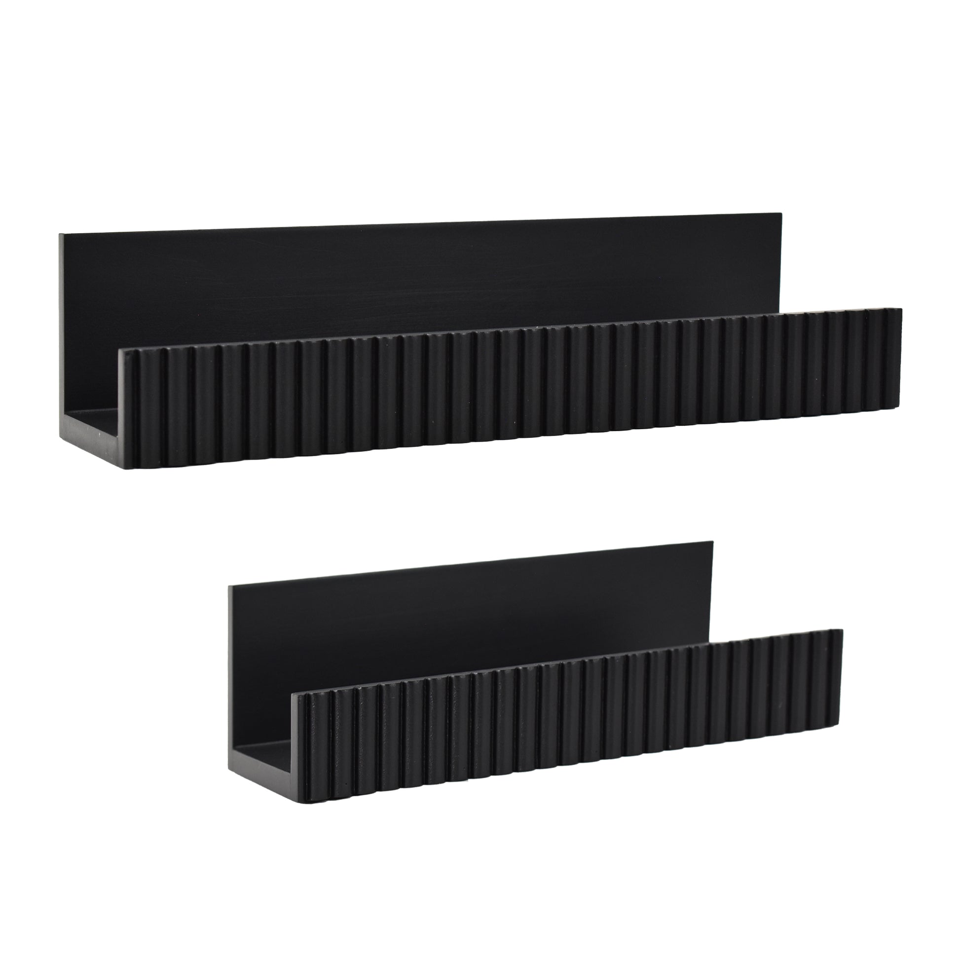 Ribbed 2-Piece Floating Wall Shelf Set, Black Shabby Chic