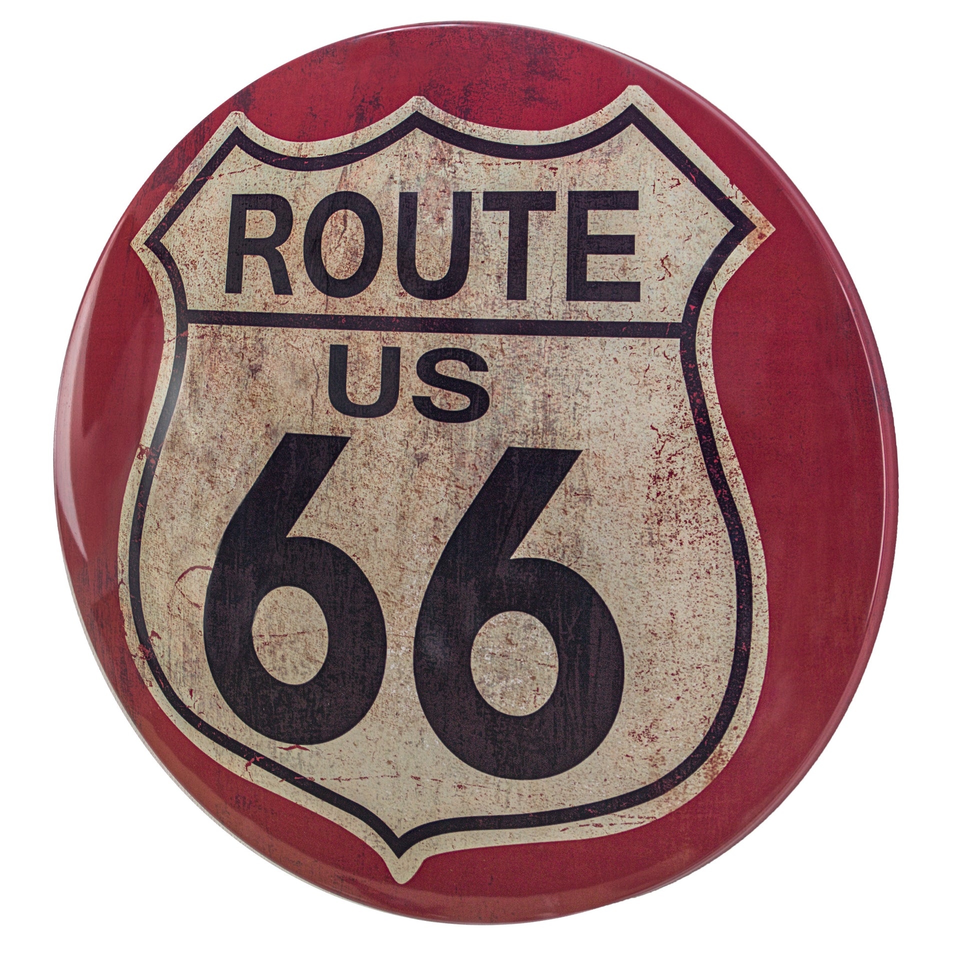 Get your kicks on Route 66 and take a road trip back in time with this nostalgic, charming, and vintage-inspired signage that captures a slice of Americana history.Made from lightweight metal that is printed upon with superior quality, this dome-shaped metal sign also has depth and dimension, which makes it easier to notice and adds a bit of a dynamic flair to the piece.