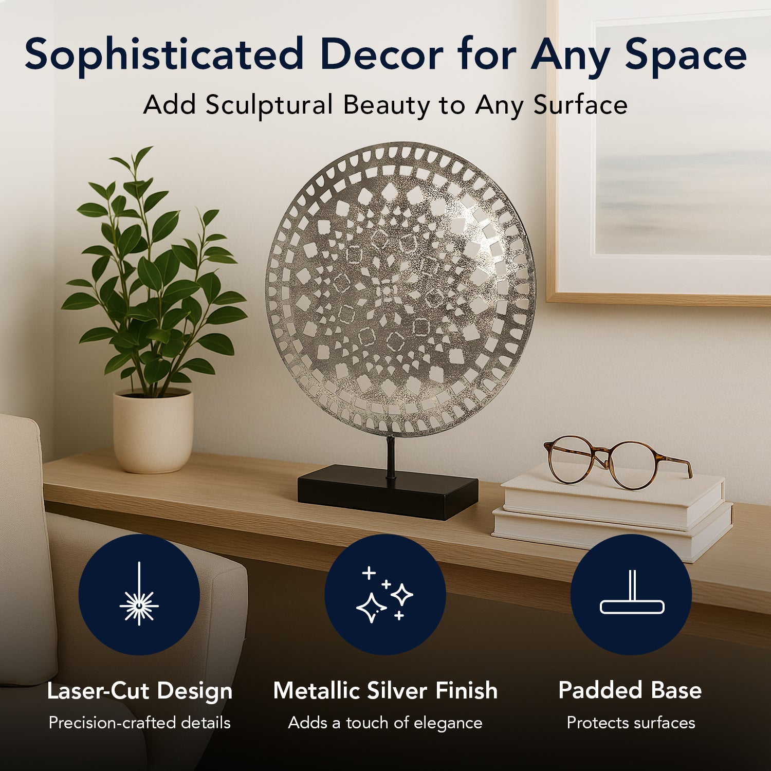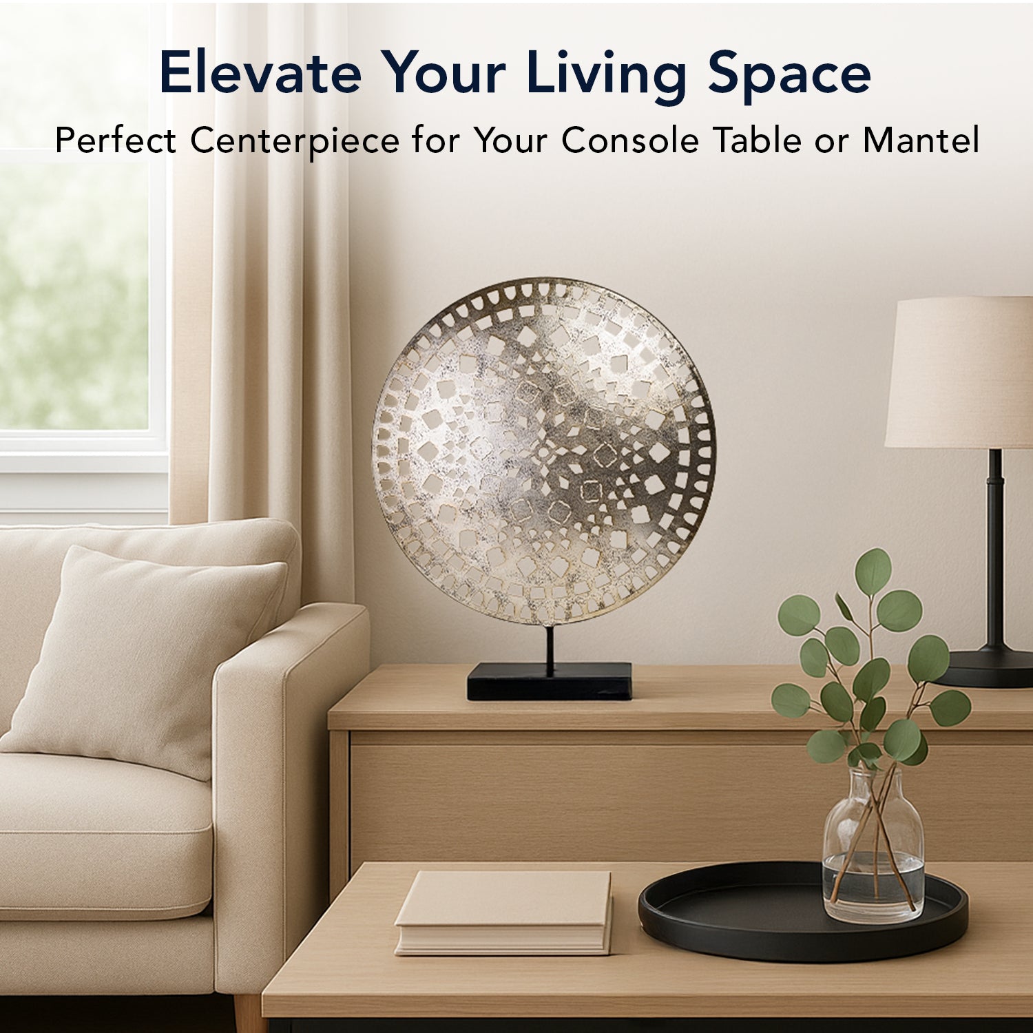 - VERSATILE STYLING - Proudly display this contemporary metal medallion figurine on your covted wood coffee table, antique mantle or mid-century modern vanity.
