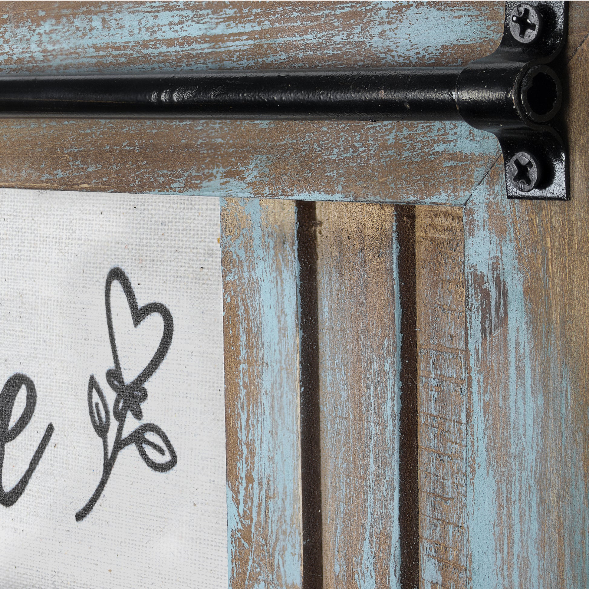 Fashioned to resemble a shuttered window or door panel, this rustic piece is a lovely reminder that good days still lay ahead.