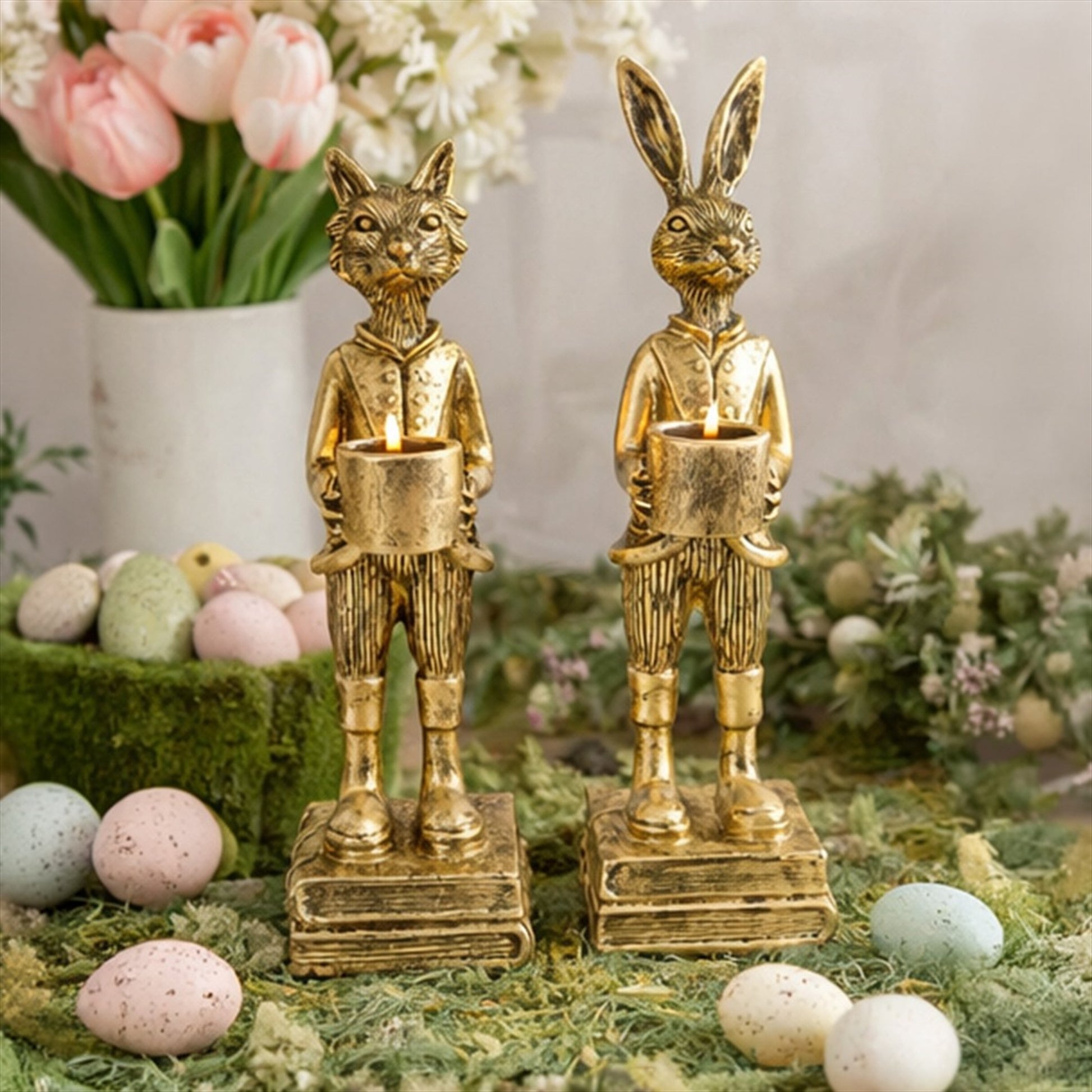 The Fox and Rabbit Gold Resin Tabletop Bar Decor