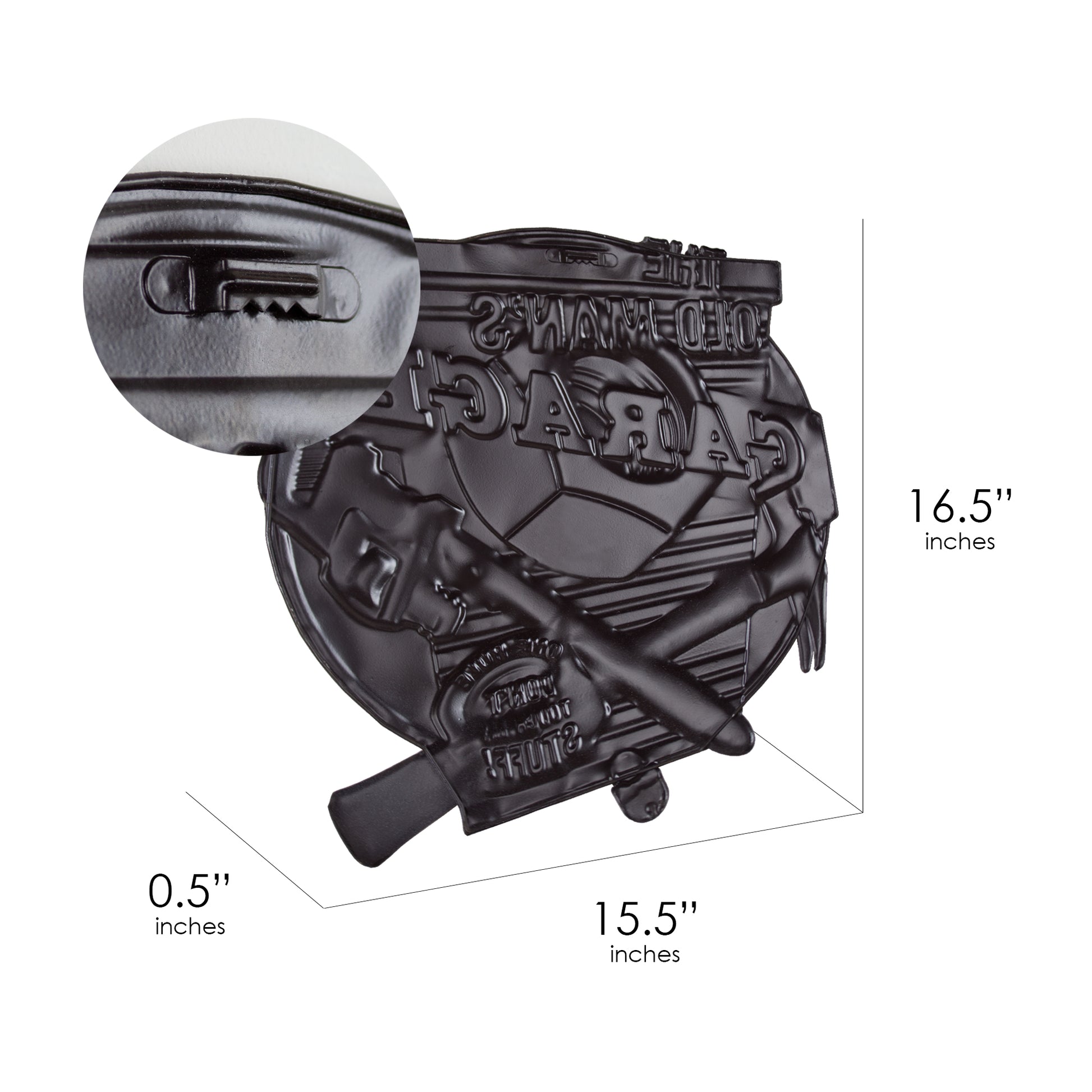 There’s only one rule in the old man’s garage: don’t touch my stuff.Give the mechanic in your life a little humorous decor for their auto shop, garage, man cave or basement with this embossed metal hanging sign that details various tools and equipment.