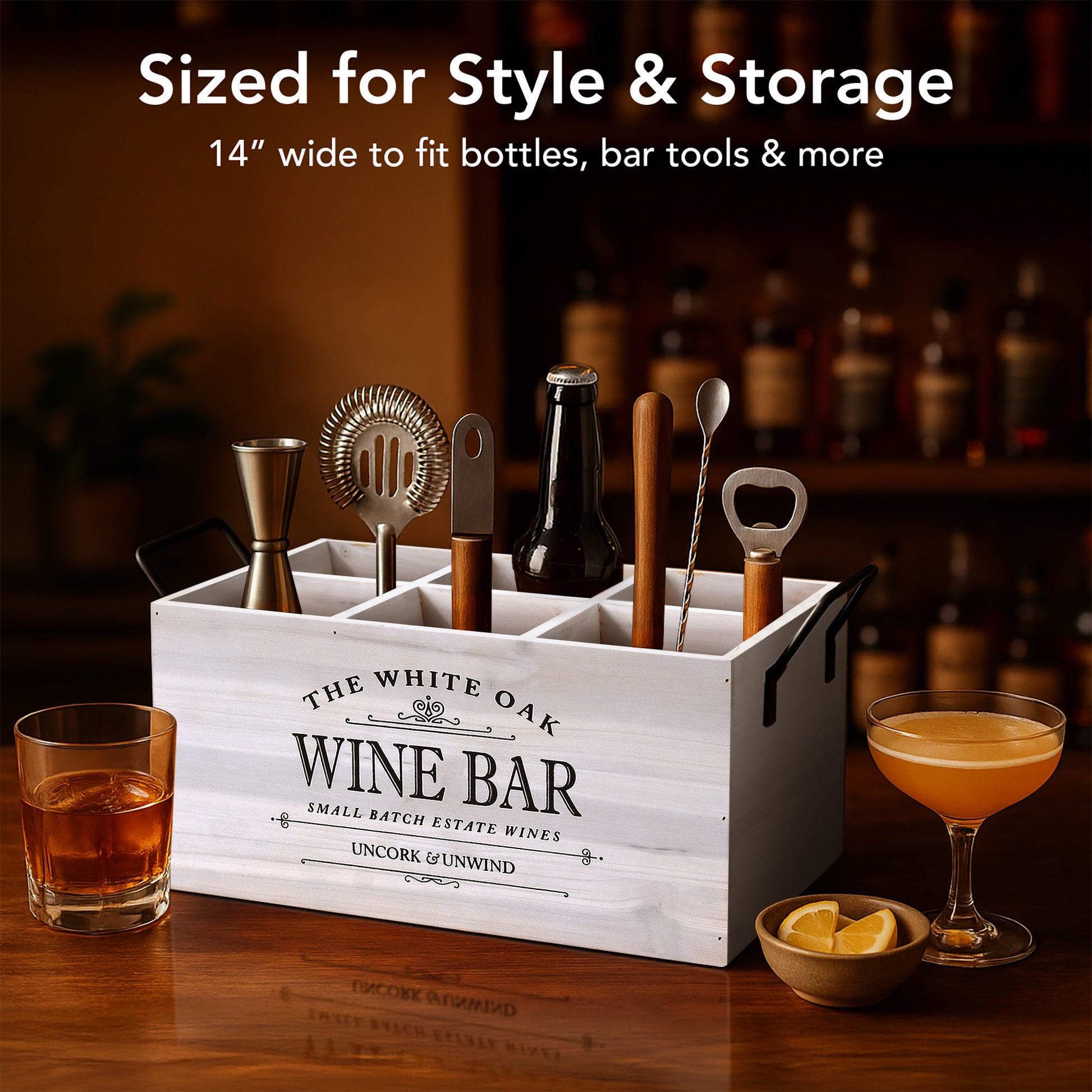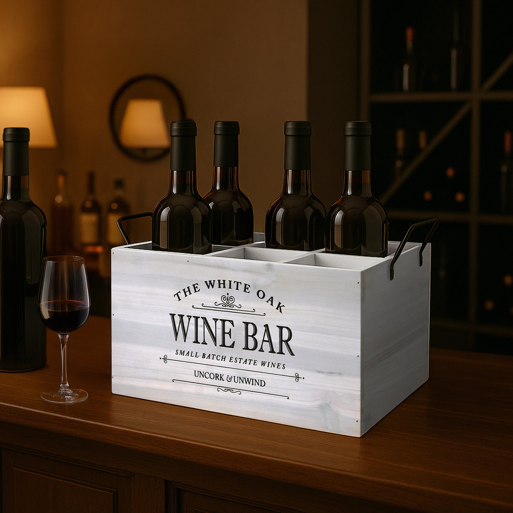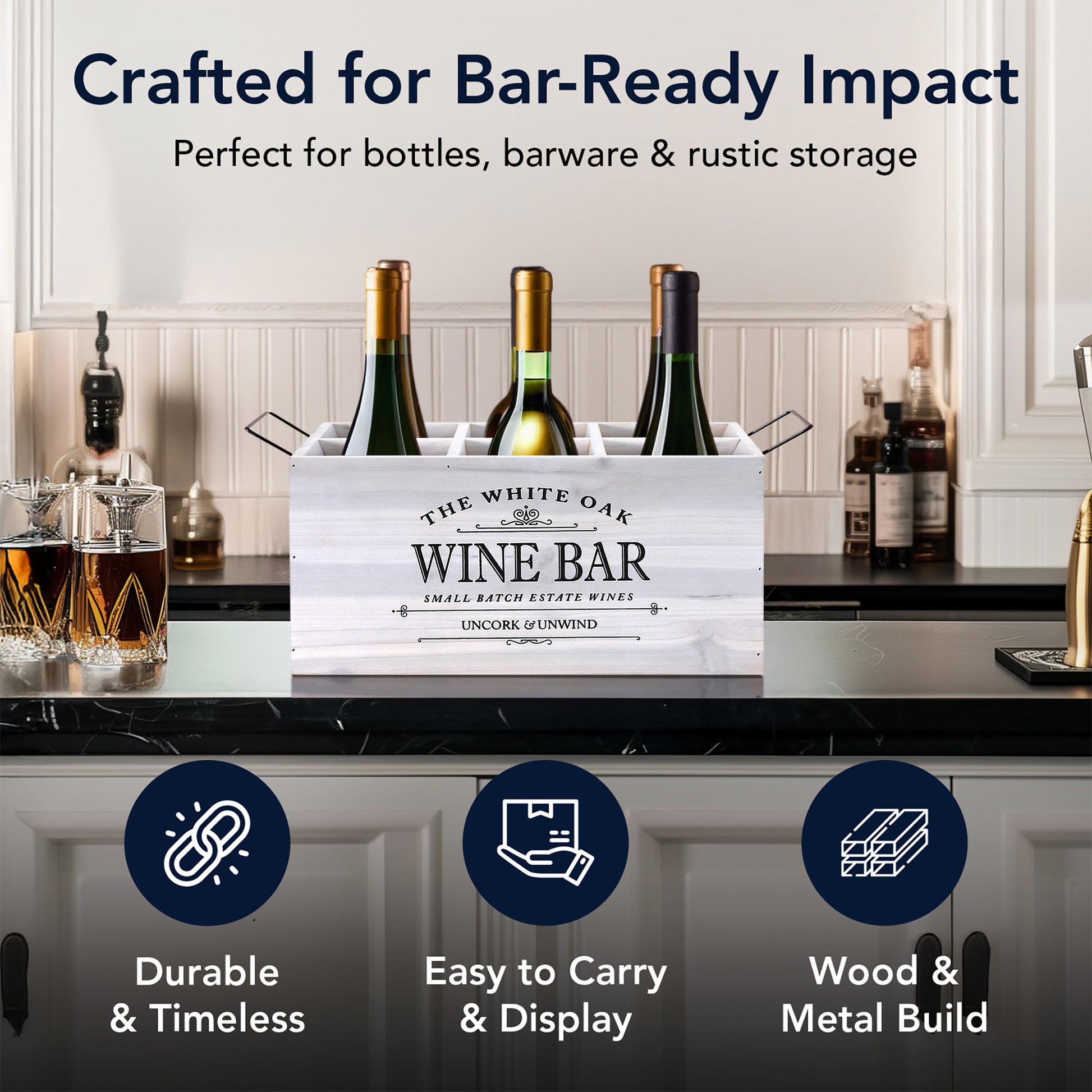 - 6-BOTTLE STORAGE CAPACITY: Holds up to six bottles of wine, champagne, or mixers-perfect for organizing your bar or creating a custom wine gift set. Use it as a decorative storage box or a portable serving crate.