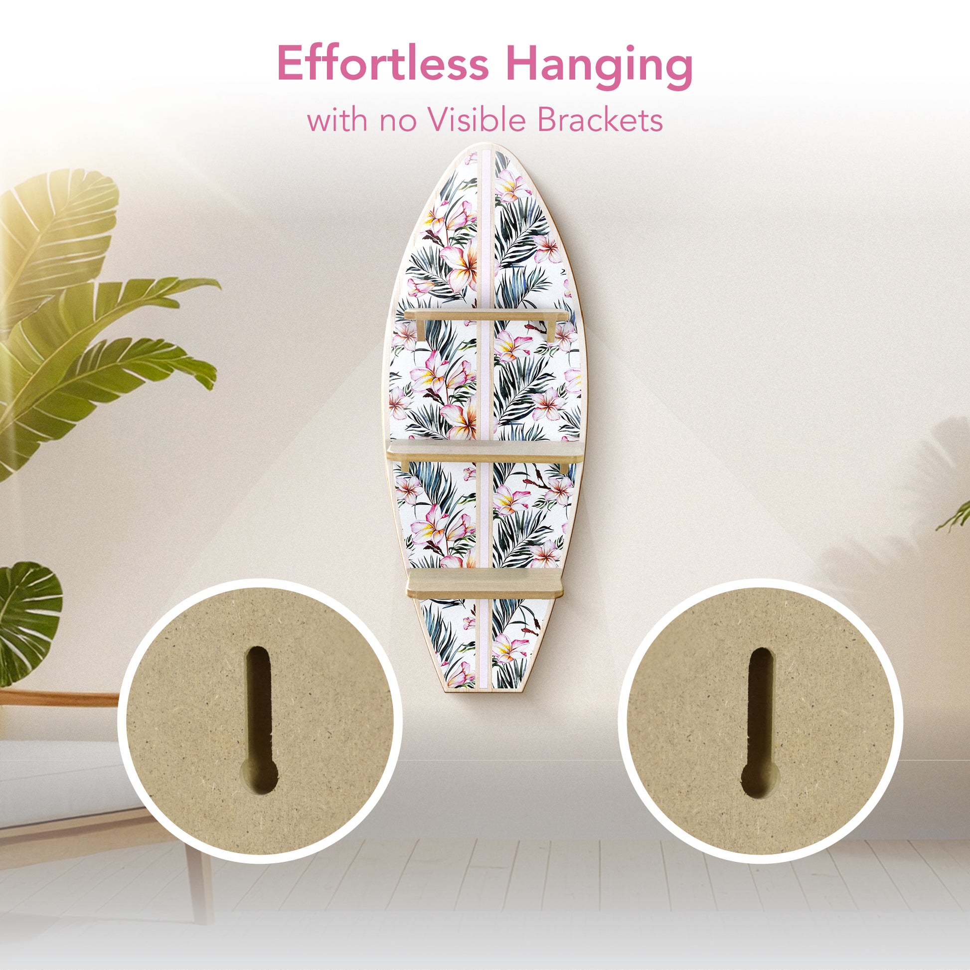 - SURF-INSPIRED SHELF DECOR - Unique surfboard shape blends wall art with practical shelving for books, plants, candles, and more.