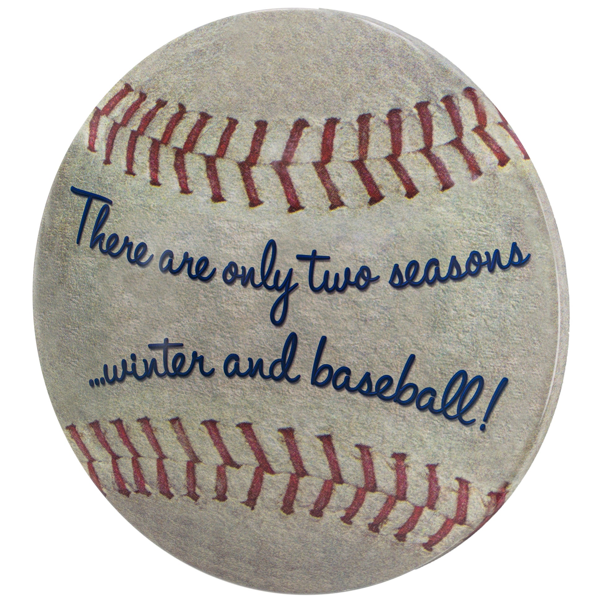 - BASEBALL DESIGN – Fashioned to resemble a baseball, this dome-shaped metal sign makes for catchy wall decor as it also features bold lettering with a very funny and important message “There are only two seasons…winter and baseball!”