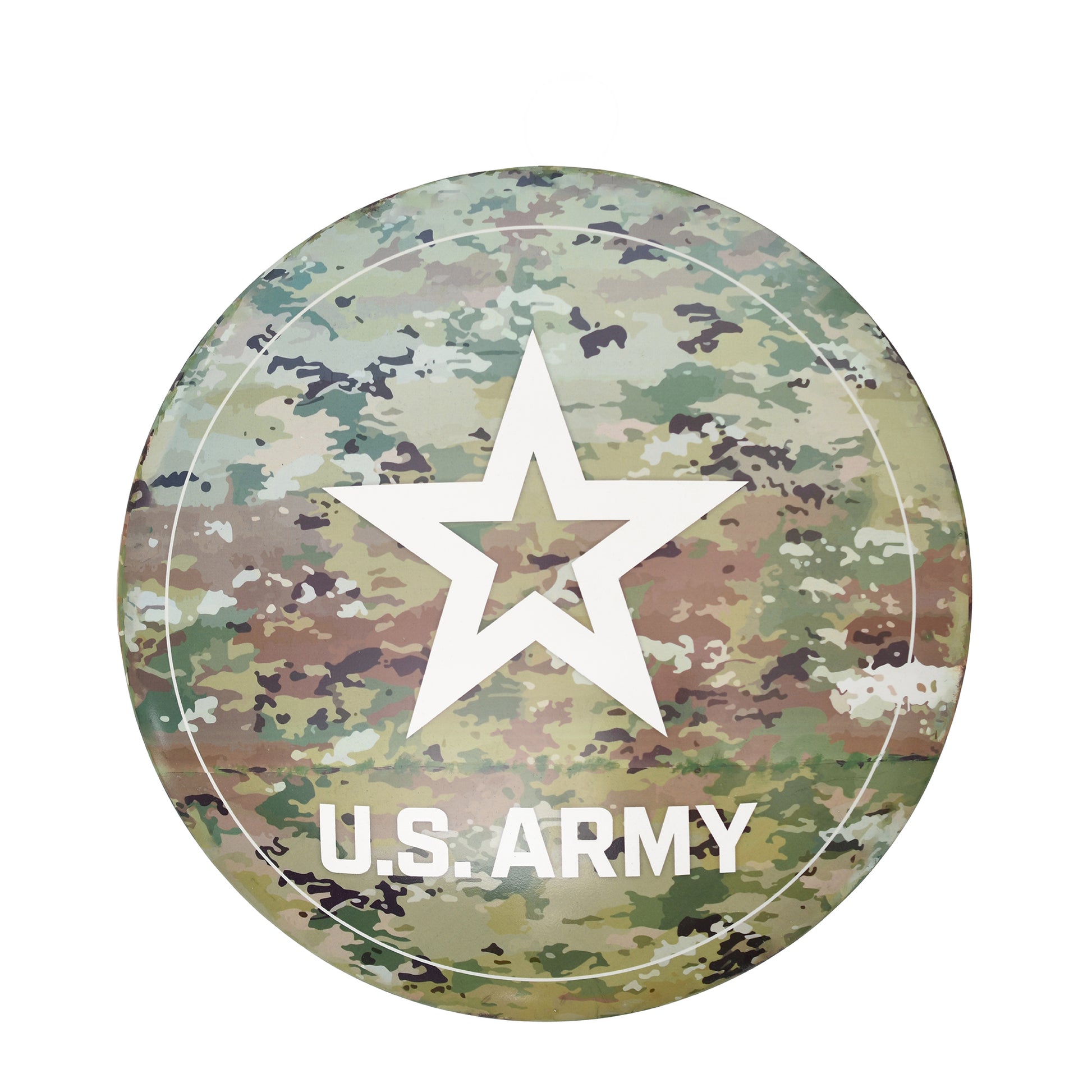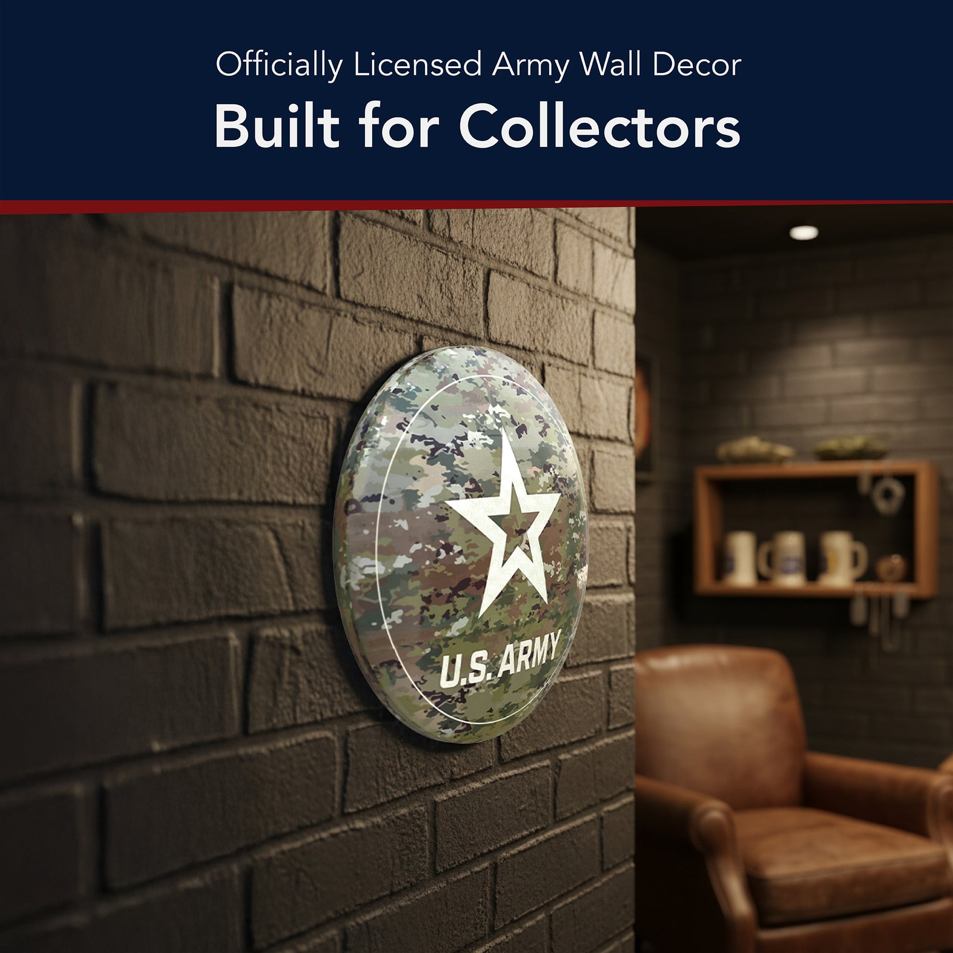 - ICONIC U.S. ARMY CAMO DESIGN - Featuring a bold military star and camouflage pattern, this dome metal wall art proudly represents Army strength, service, and patriotism in a visually striking display.