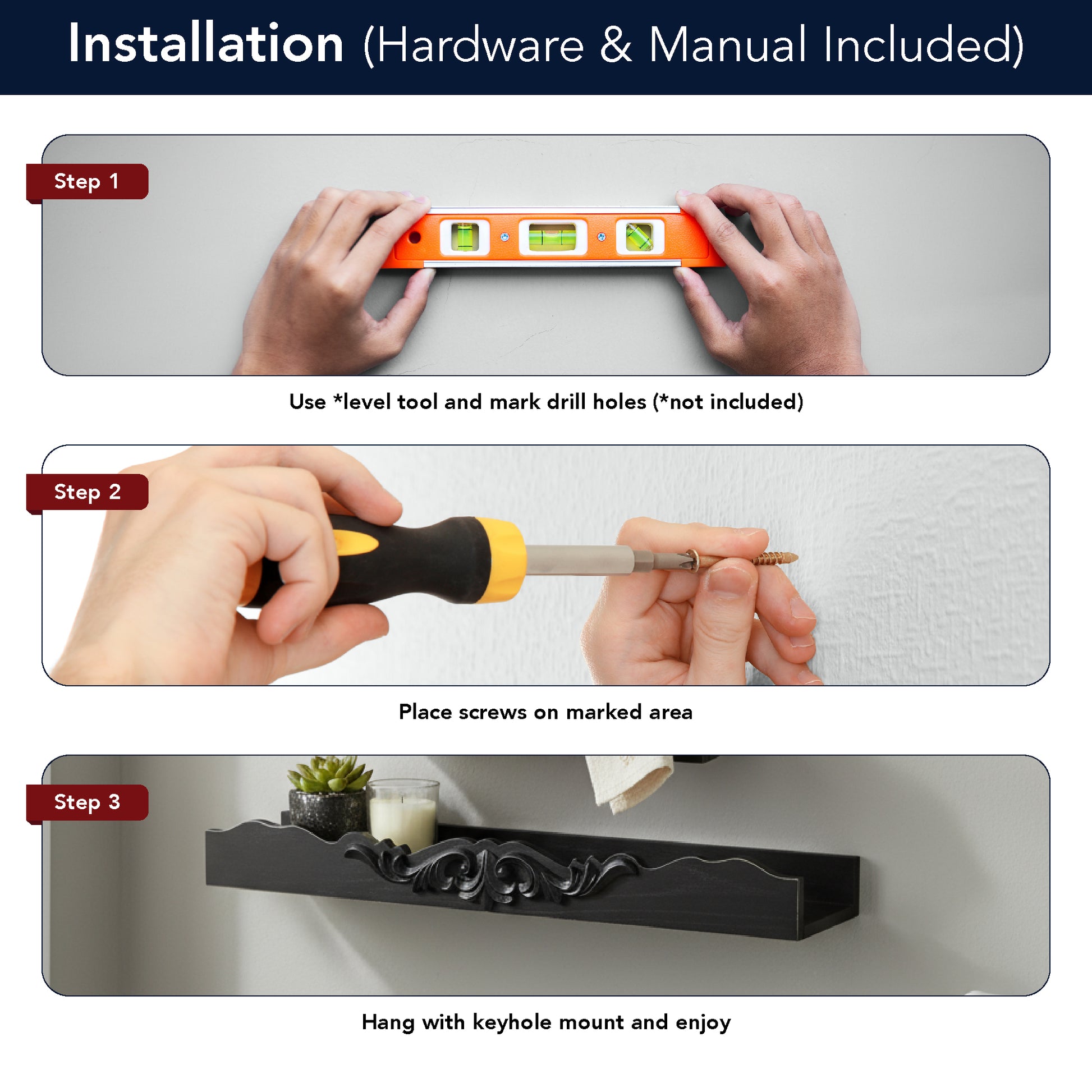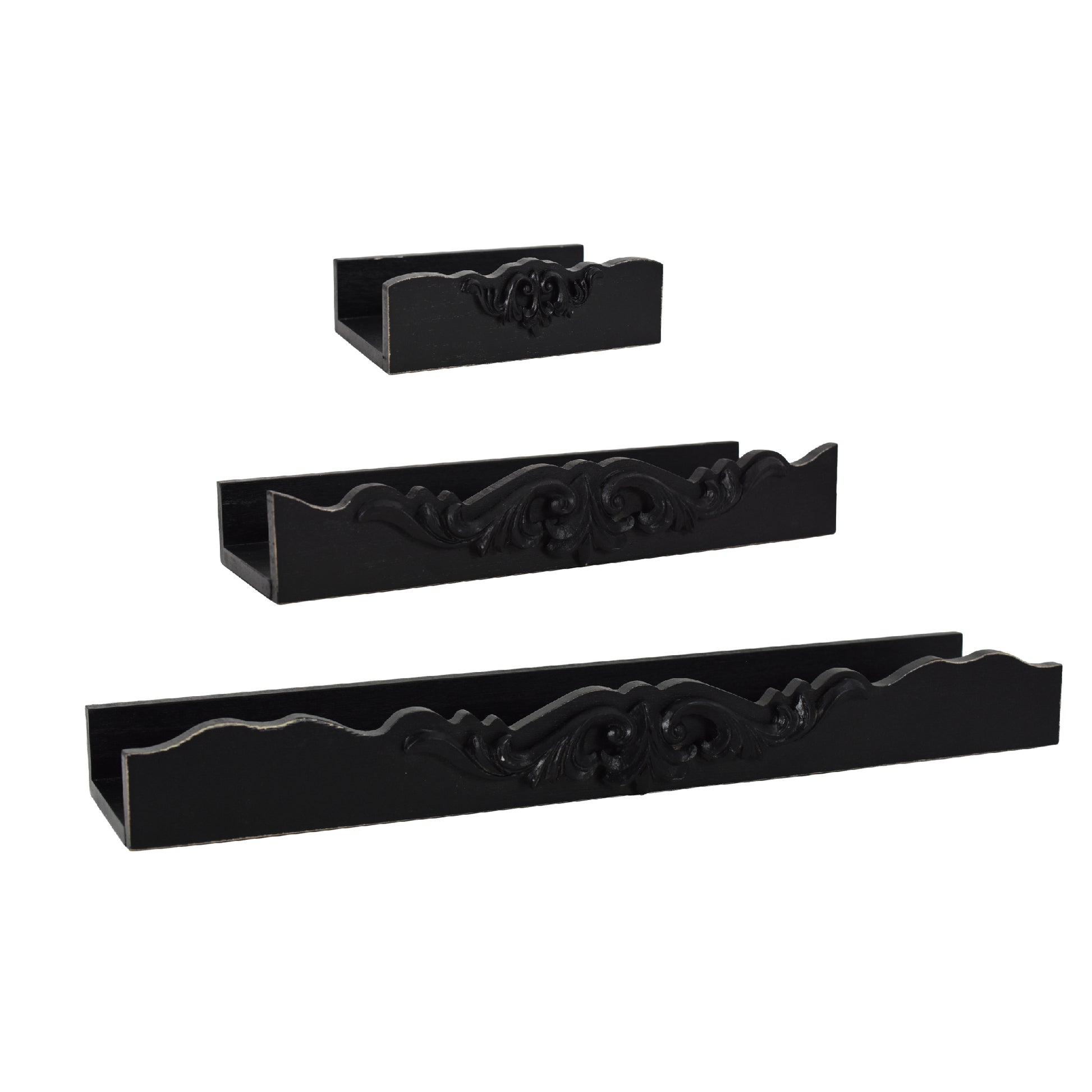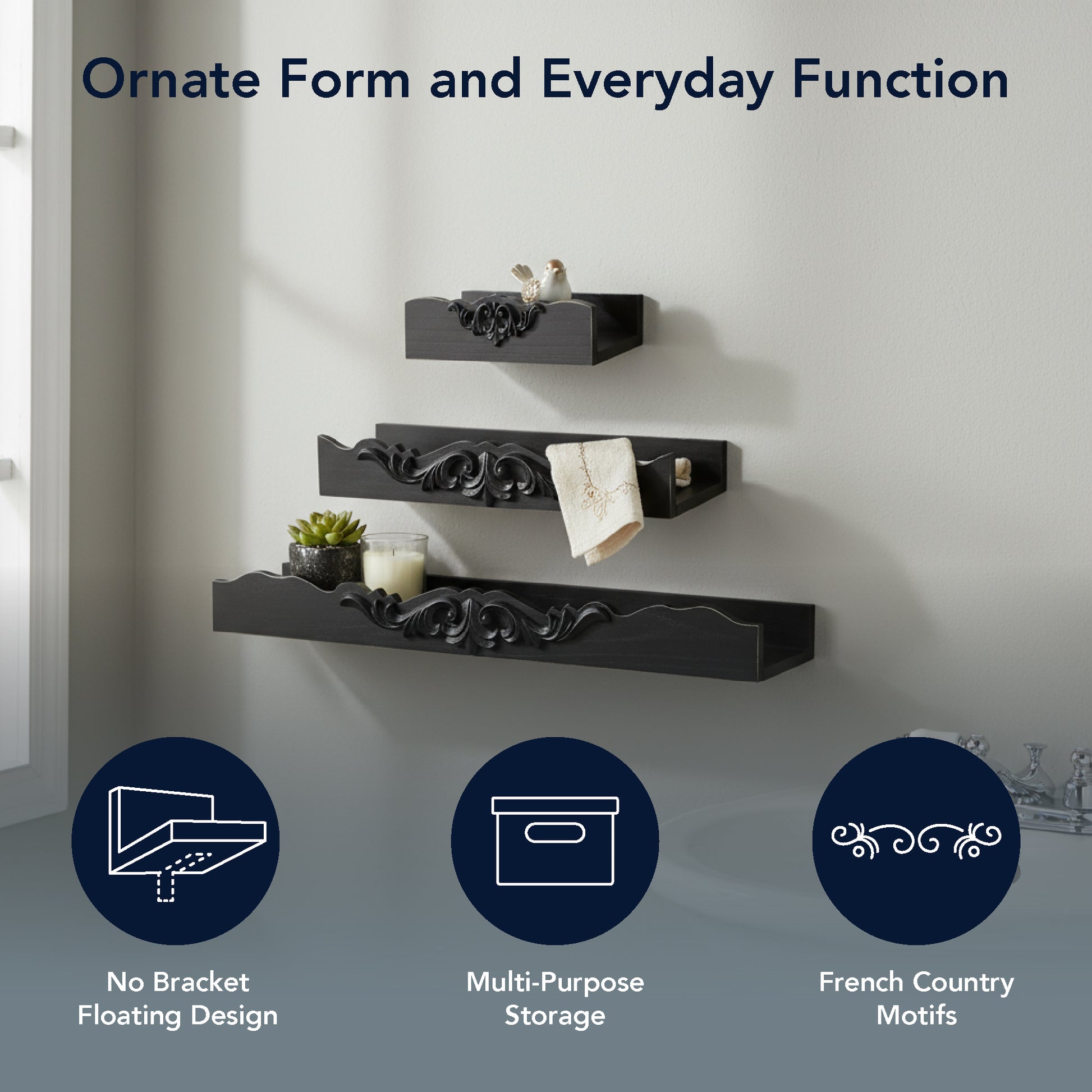Vintage Black Ornate 3-Piece Floating Wall Shelf Set
