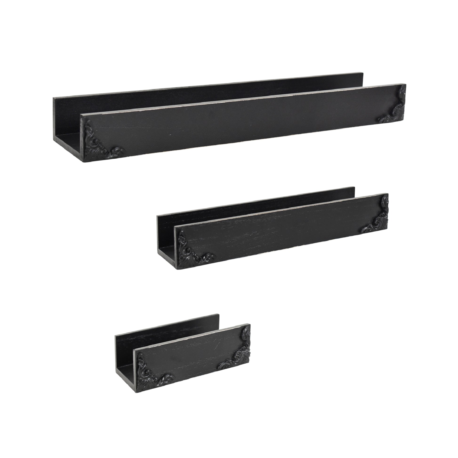 Vintage Black Ornate Trim 3-Piece Floating Wall Shelf Set