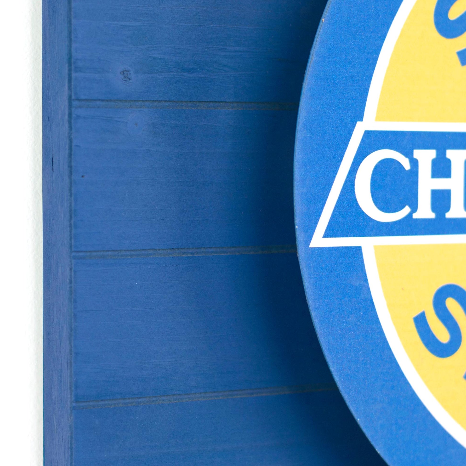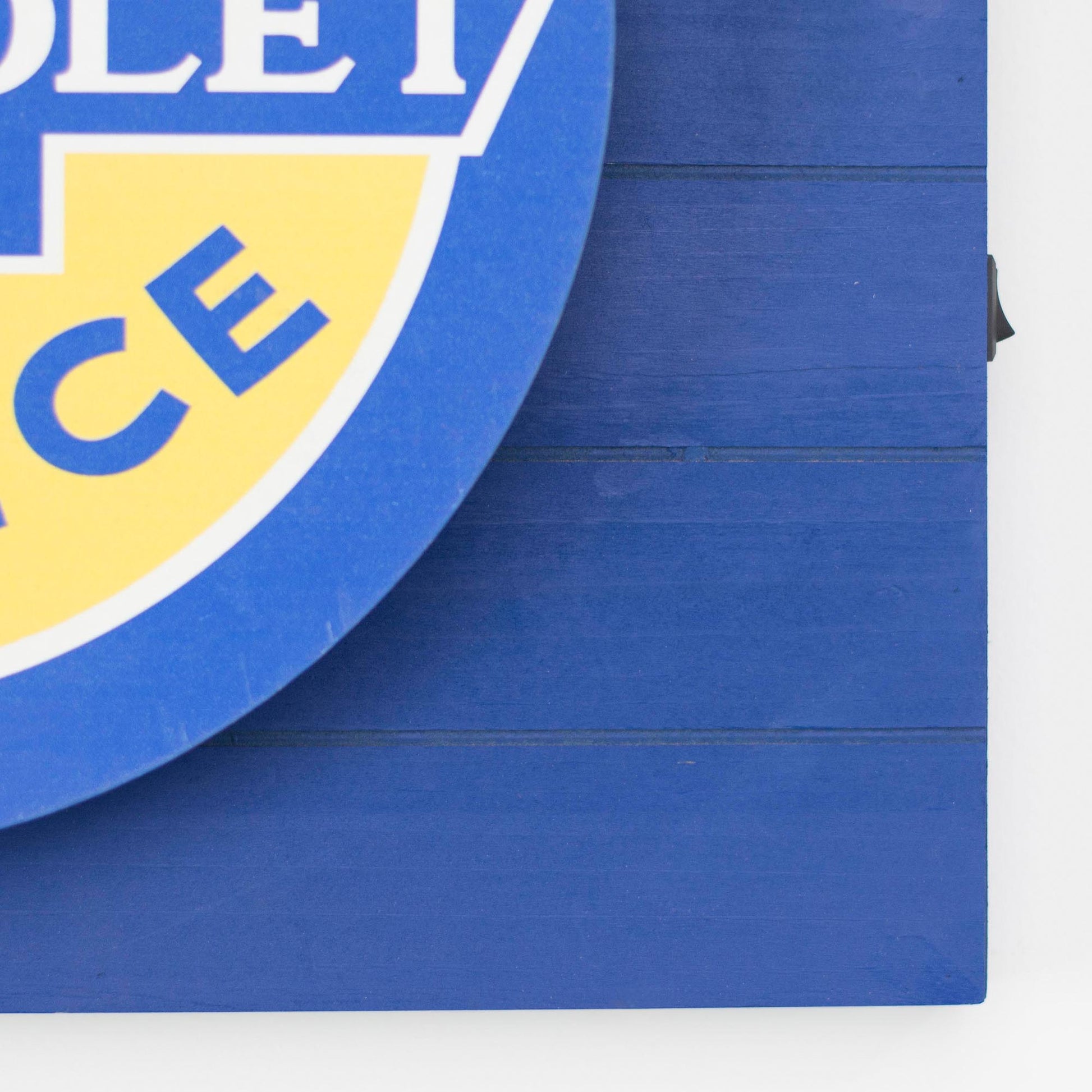 Mounted against a true-blue background, this metal sign is lit from behind using hidden, energy-efficient LED strips, giving it a mesmerizing glow from within. Pair this wall decor piece with other Chevrolet paraphernalia or display it on its own for the ultimate statement piece. Either way, we're positive you'll enjoy this one-of-a-kind vintage sign for many years to come.