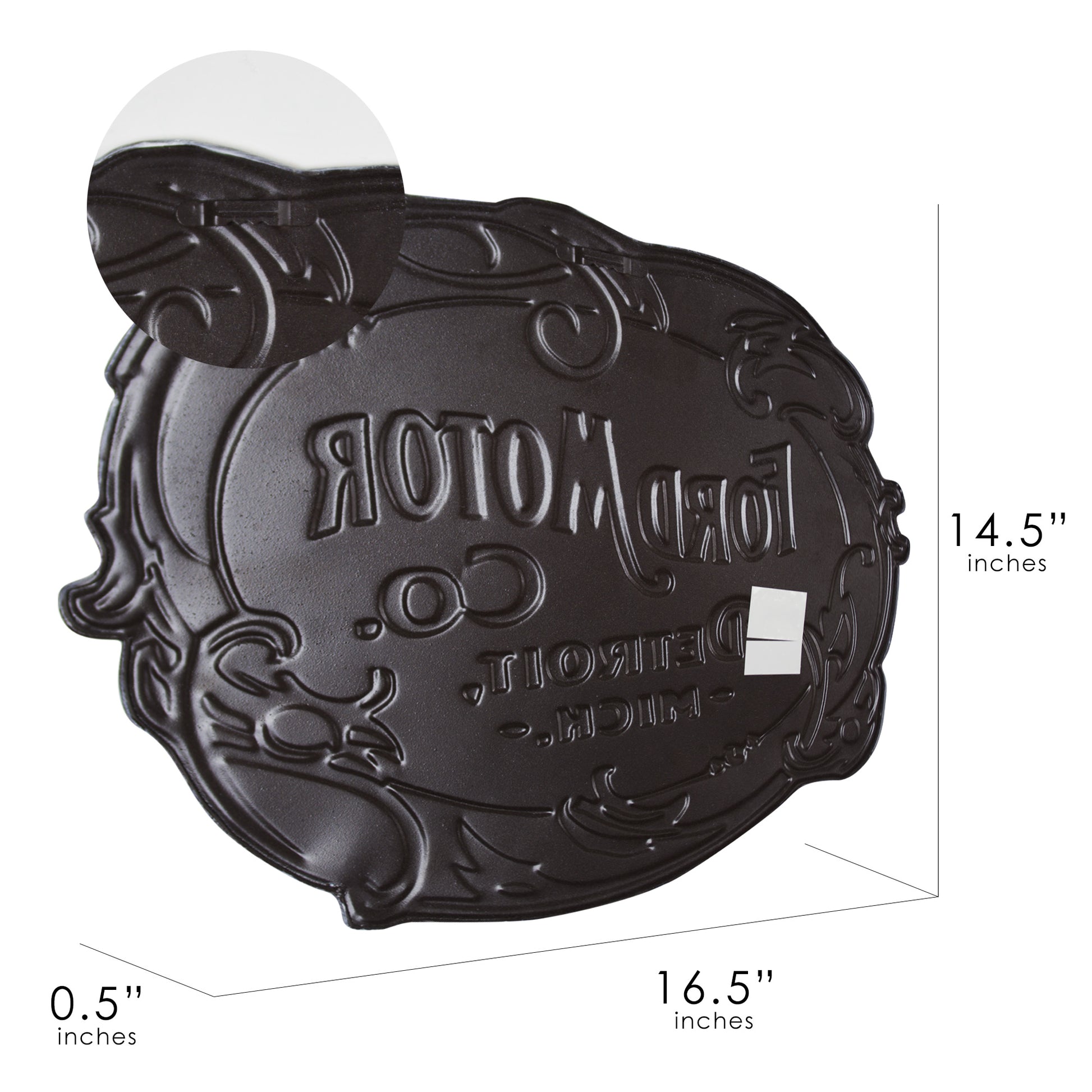 Showoff your love of Ford products with this embossed metal wall decor sign that depicts the well known car company’s first logo from 1903.Whether you are a Ford aficionado or collector of vintage car signs in general, this retro piece of wall decor is sure to become a great addition to your collection.