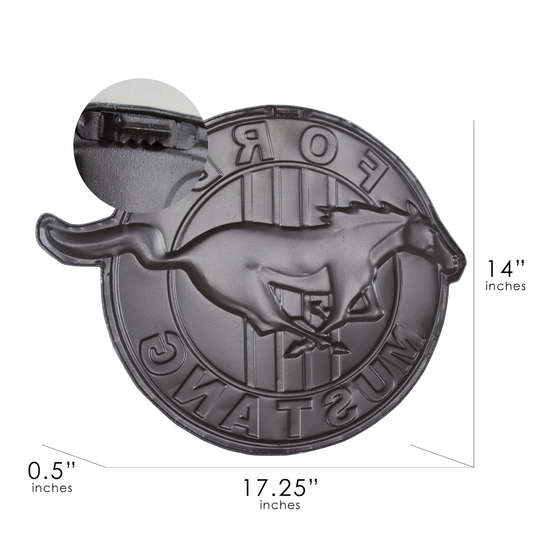Nothing is more of a signifier of the Ford logo than the Mustang horse and this embossed metal wall decor sign is a perfect way to show your love of all things Ford while also adding some decorative flair to your home.Whether you are an aficionado of vintage car signage or signs in general, this metal retro sign is sure to become a great addition to your collection. Boasting the beautiful beast of burden swiftly galloping atop the red, white and blue colors of the insignia, this piece of metalwork is extra special as it features embossing on the lettering and horse graphic.