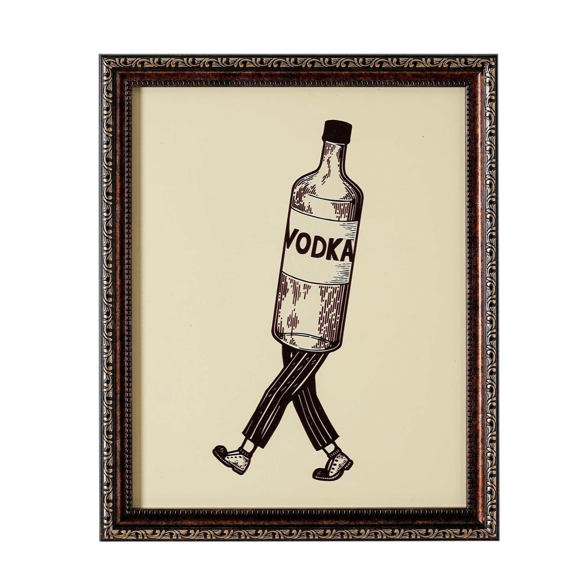 Walking Vodka Printed Glass Framed Wall Decor – a beacon of modern sophistication for your high-end home bar. This piece captures the essence of contemporary elegance, featuring a stylized depiction of Walking Vodka that merges art with the spirit of celebration. Tailored for the refined individual, it enhances any space with a touch of class and an air of mystery.Weight & Dimensions