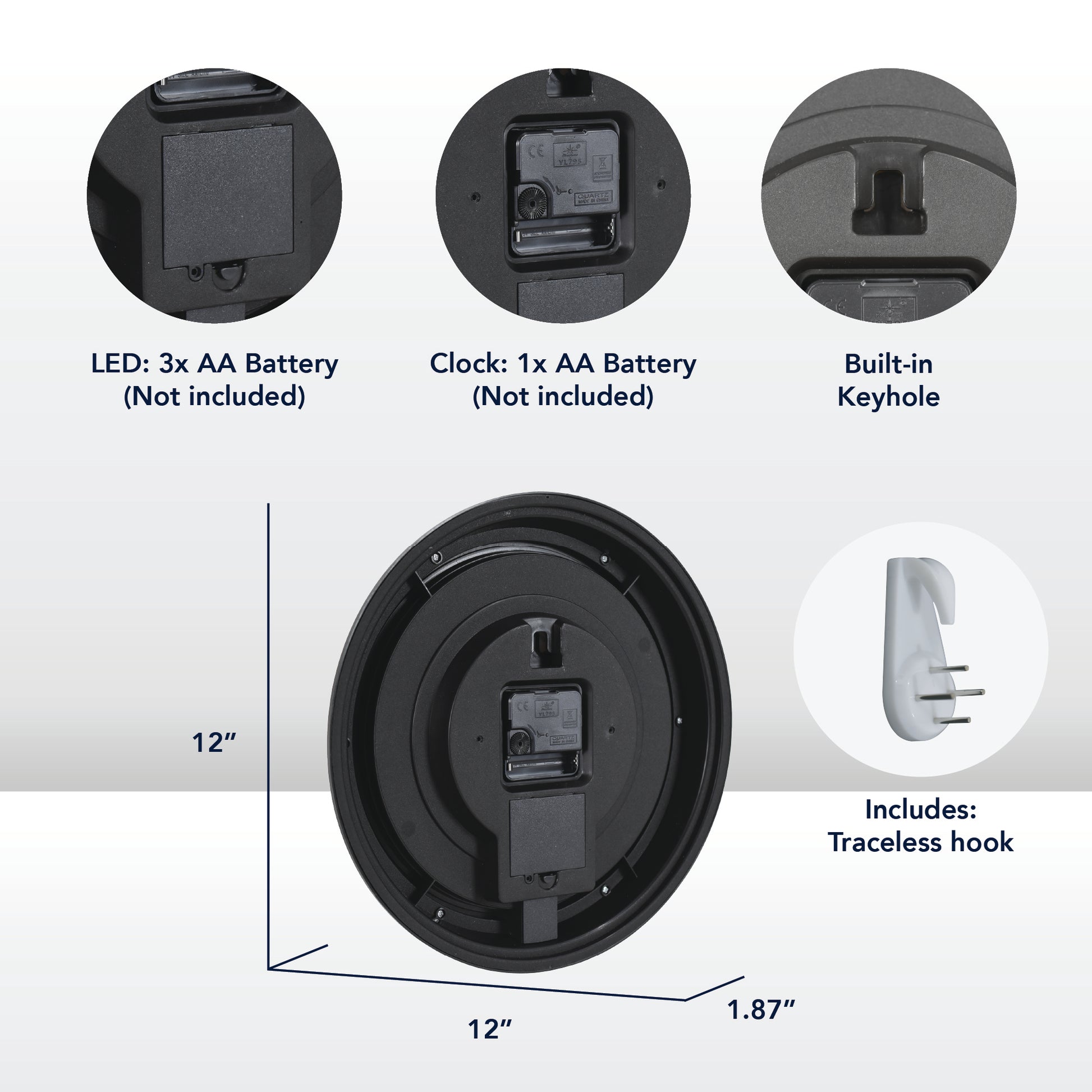 - EFFORTLESS LED GLOW - Integrated LED backlight creates a modern neon clock effect; battery operated clock with LED - perfect analog wall clock with stylish Illumination for living room decor or bedroom neon sign vibe.