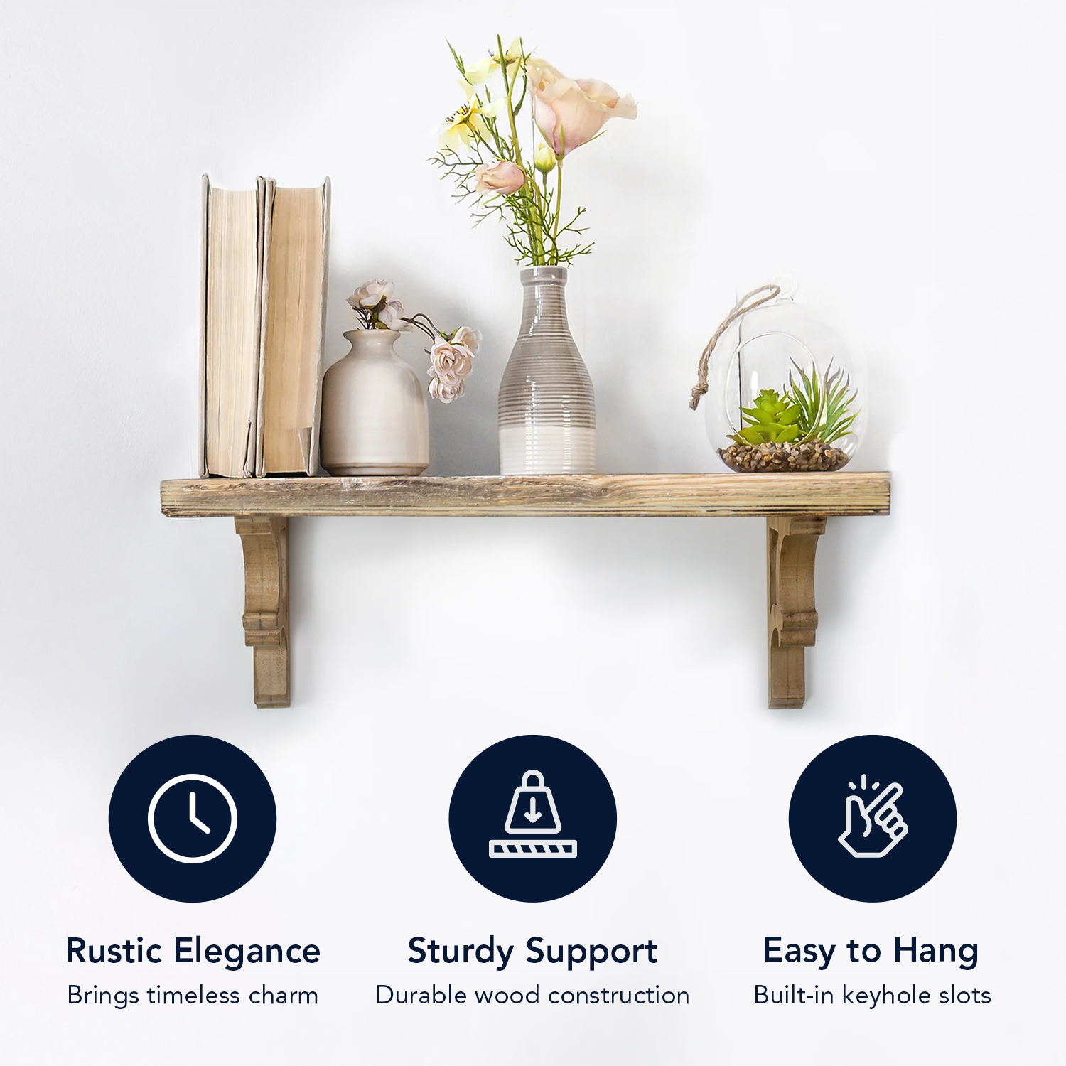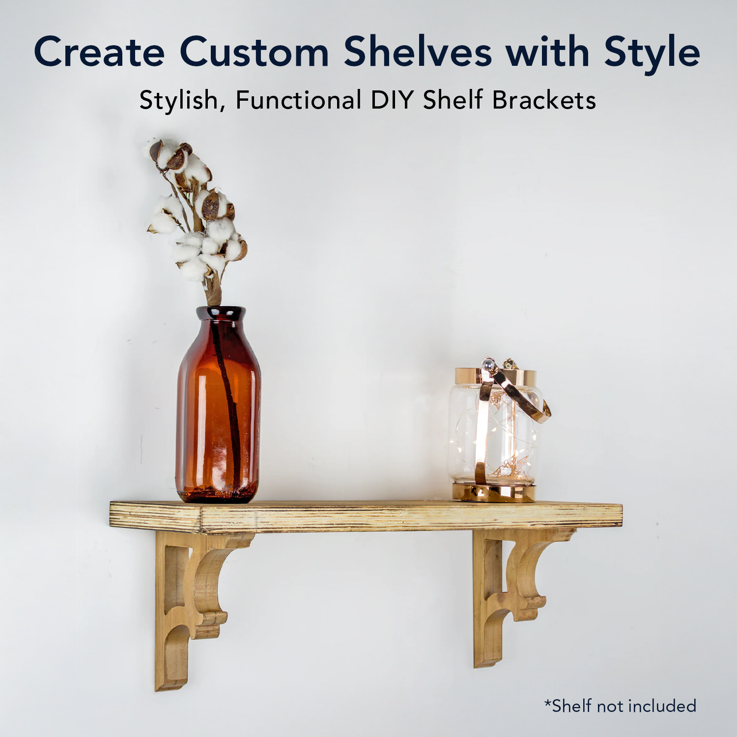 - Set of 2 corbels/brackets – Your purchase includes a set of natural wood corbels, which, when combined with a flat board on top, creates a charming and functional shelf for your home decor needs.