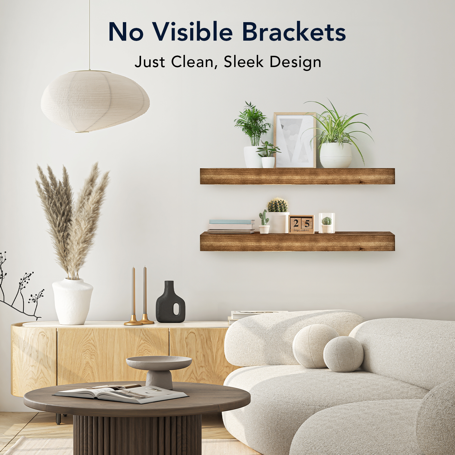 Rustic Wood Floating Wall Shelf - Large/Walnut Brown